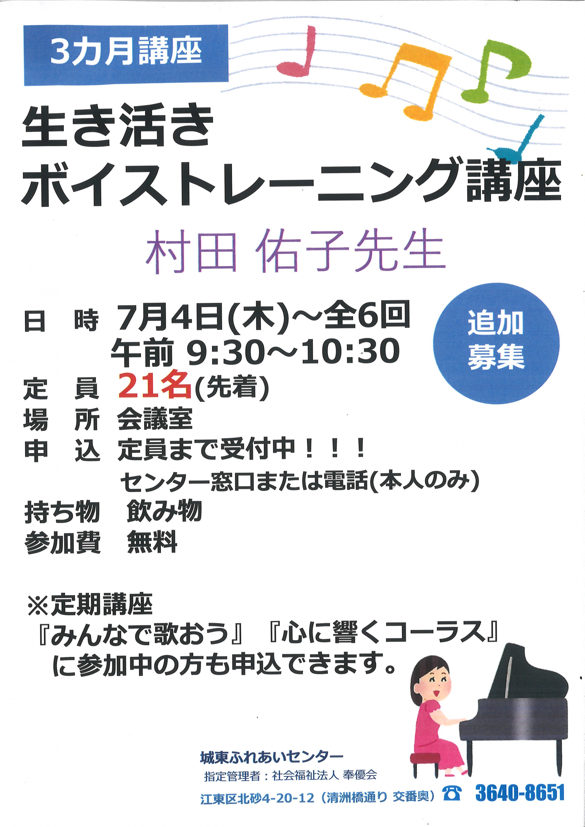 『生き活きボイストレーニング』講座、講師は 村田 佑子先生 です