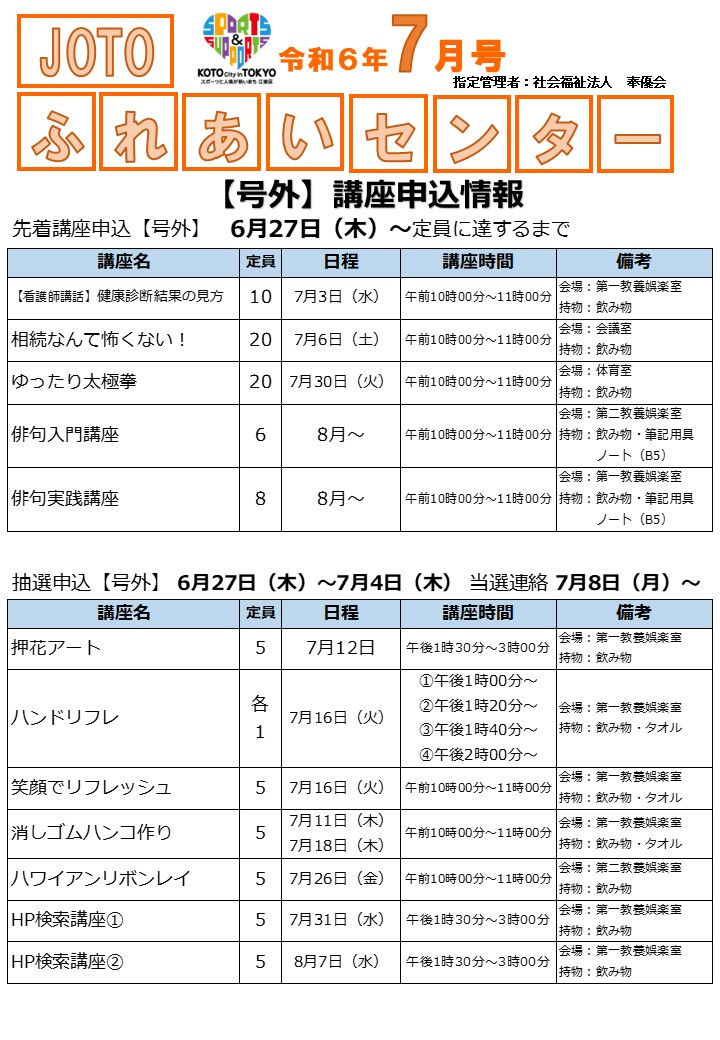 7月号は講座案内が盛りだくさんなので、号外発行いたしました!