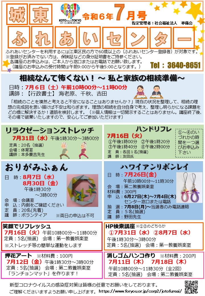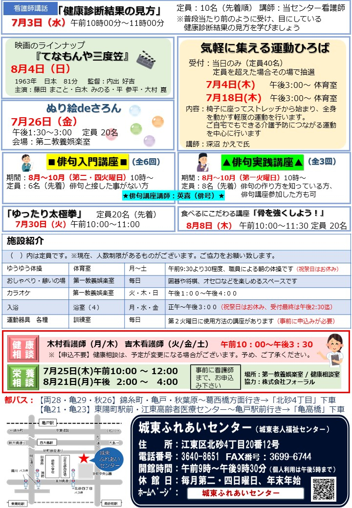 城東ふれあいセンターおたより7月号が完成しました!