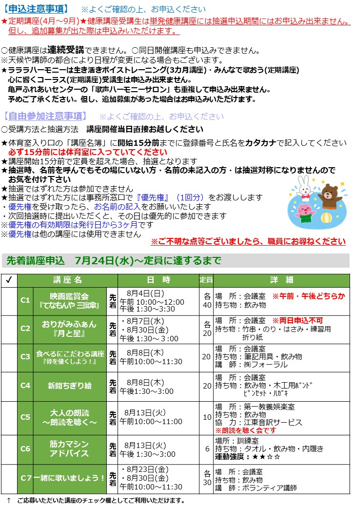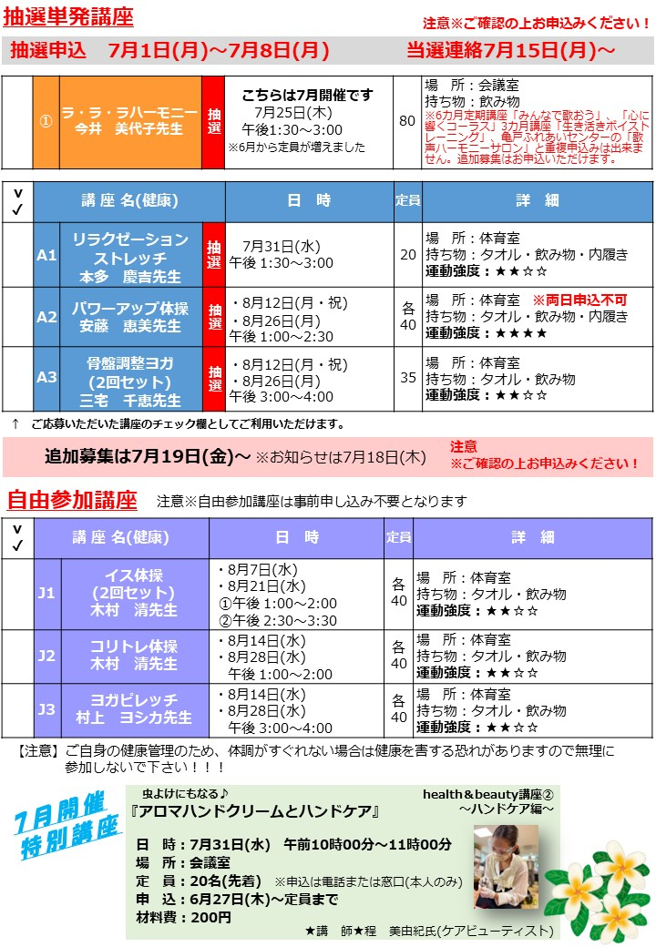 様々な講座が開催予定ですのでご確認下さい。