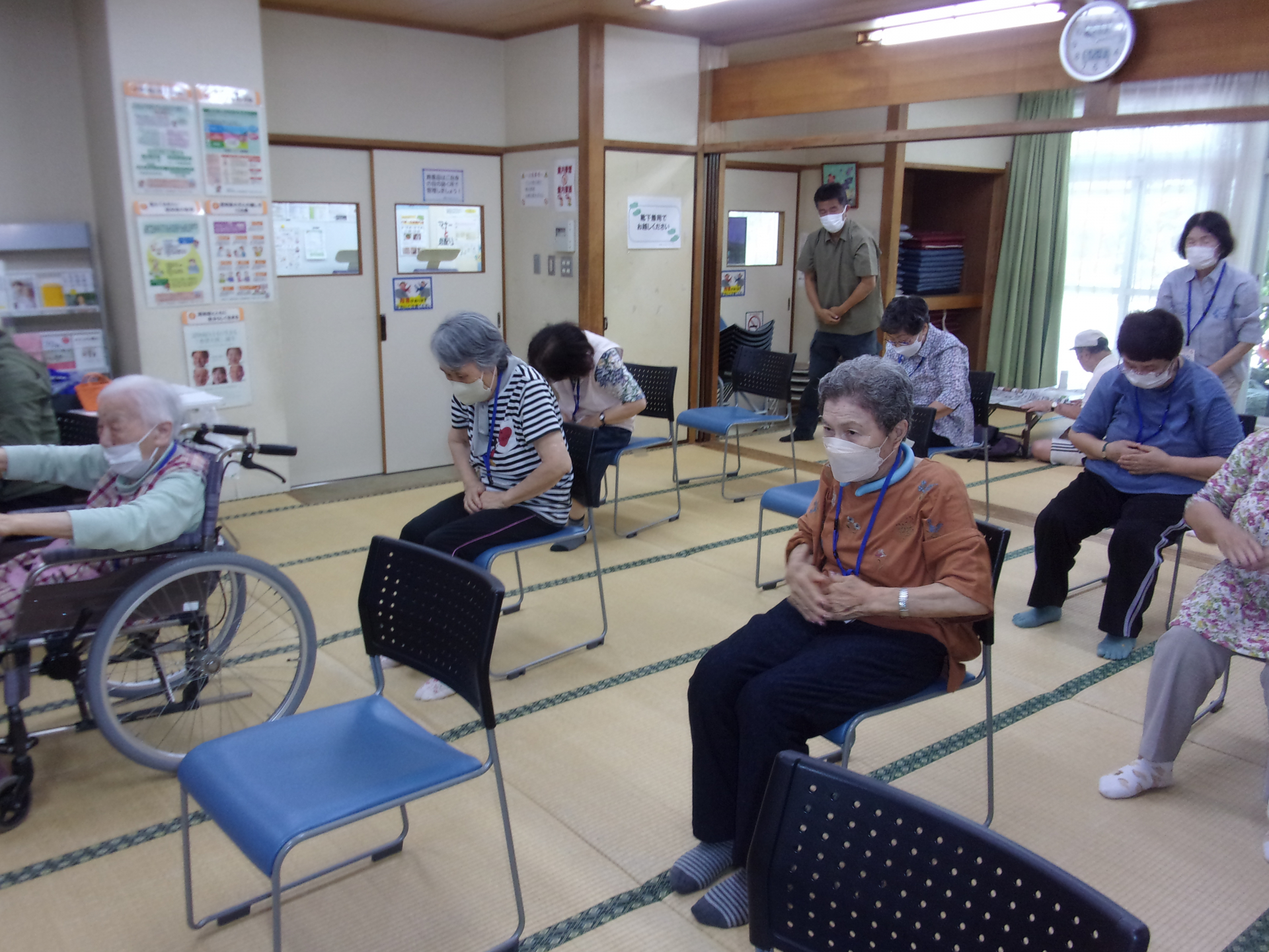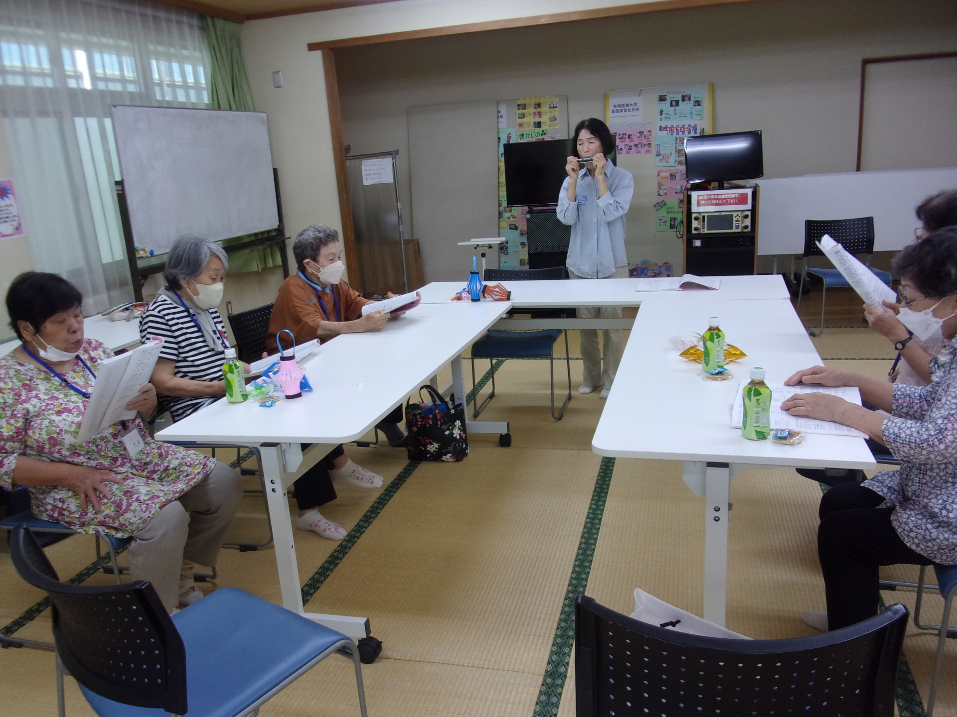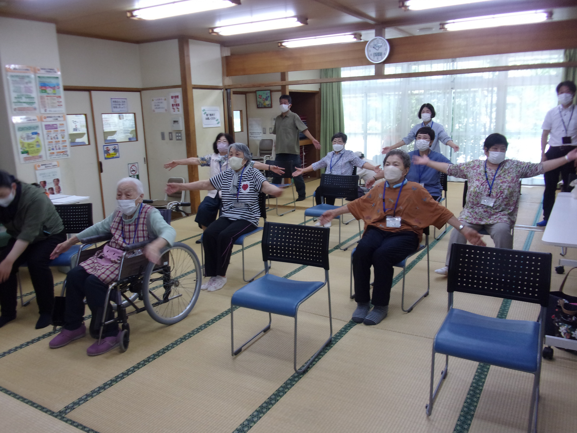 体操・おりがみで七夕飾 りを作ったり・楽しくお喋りしたり・ハーモニカの伴奏で歌を歌ったり、