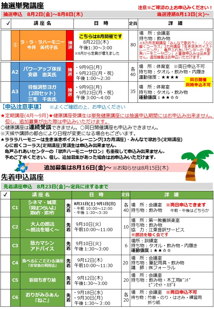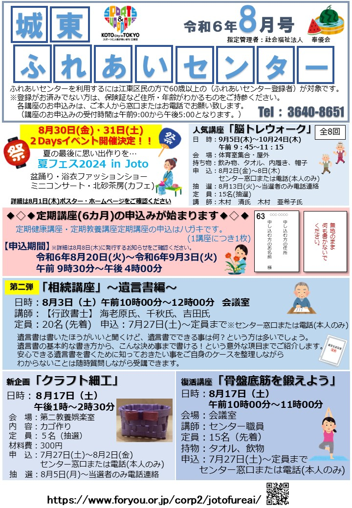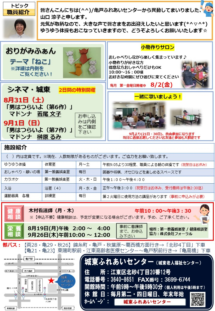 皆さん8月もぜひ城東ふれあいセンターへお越しください、お待ちしております。