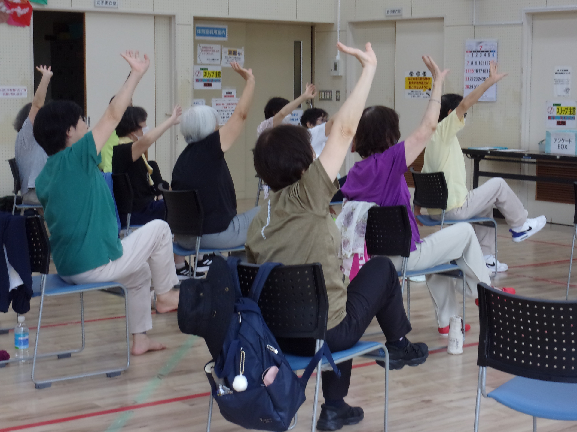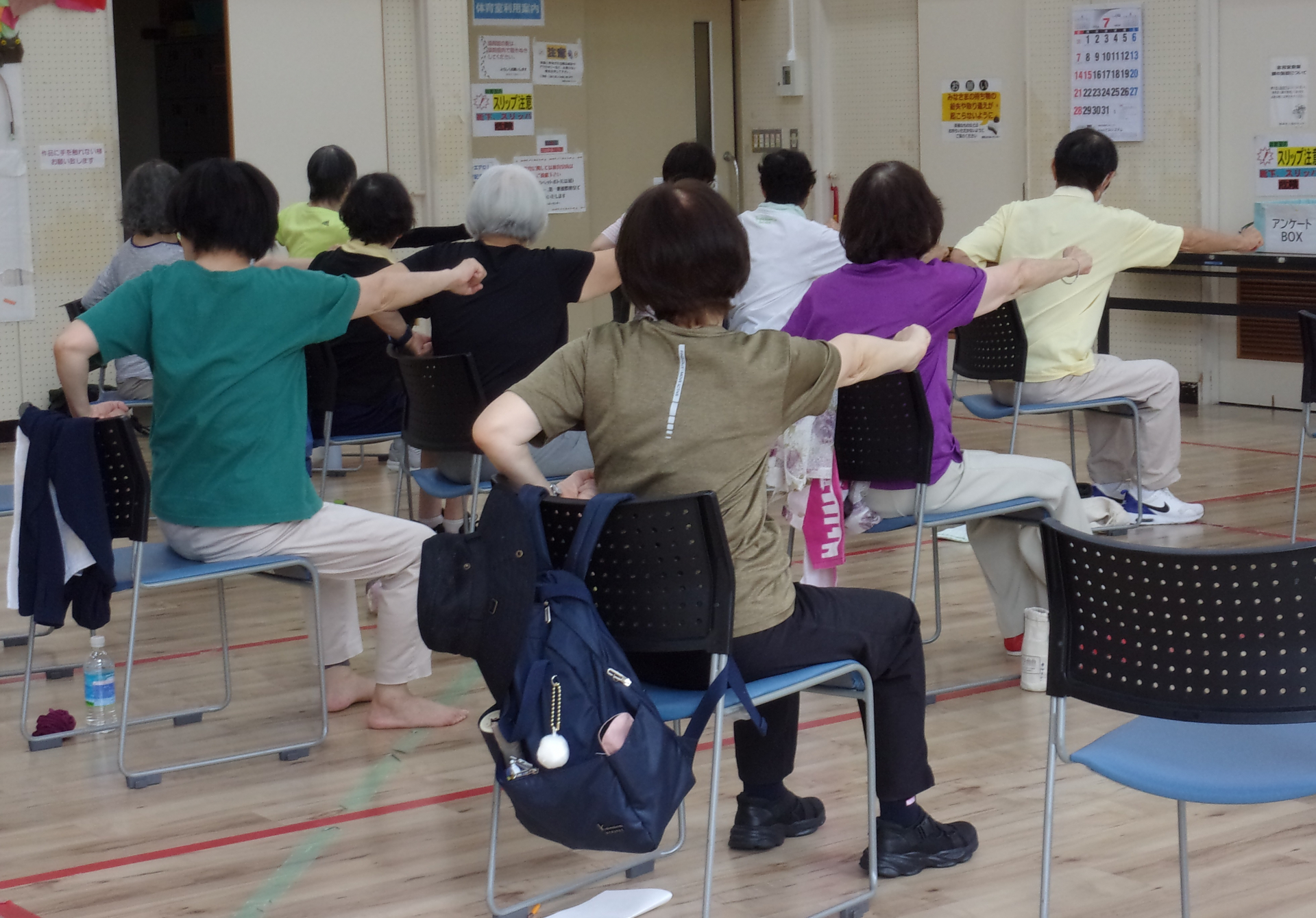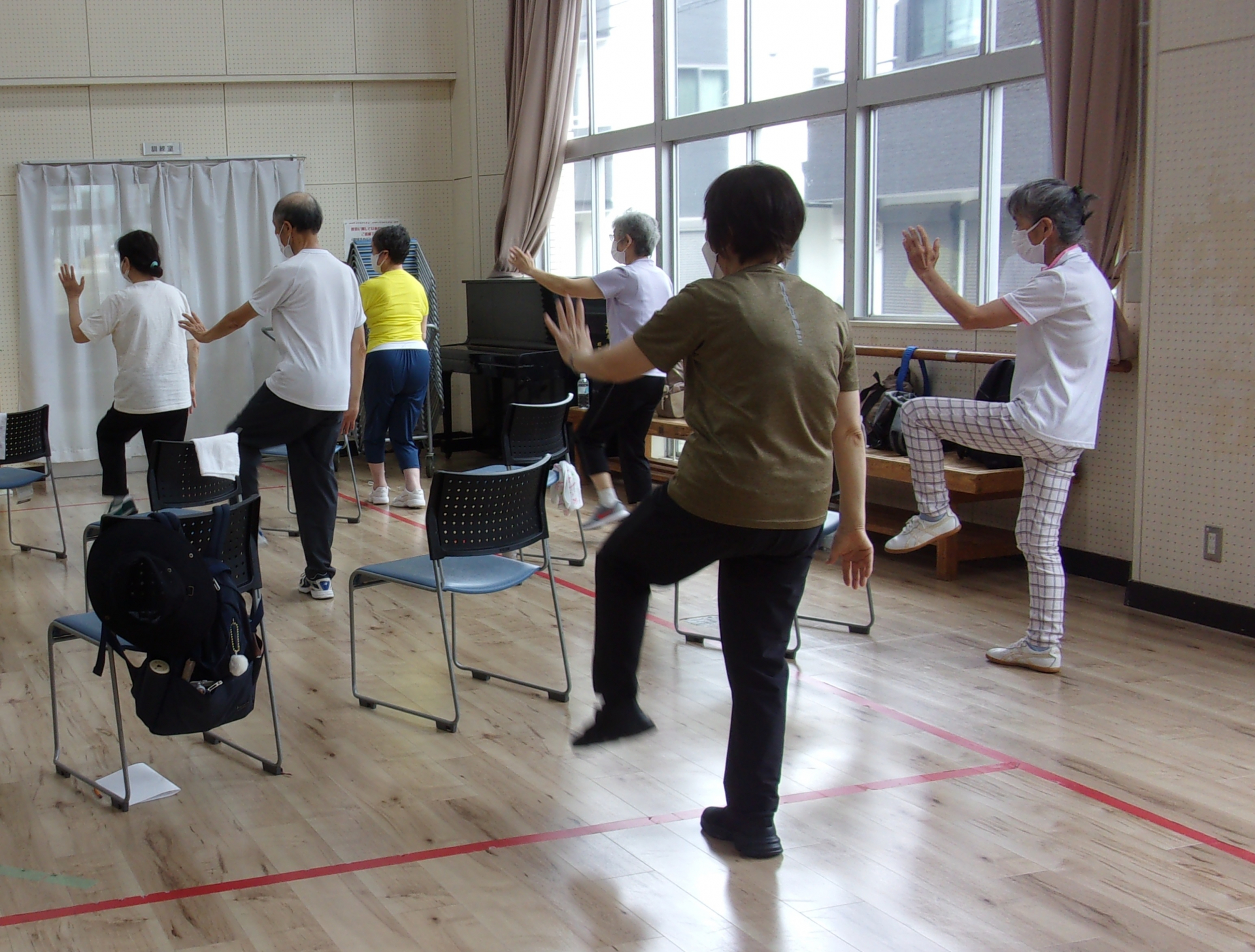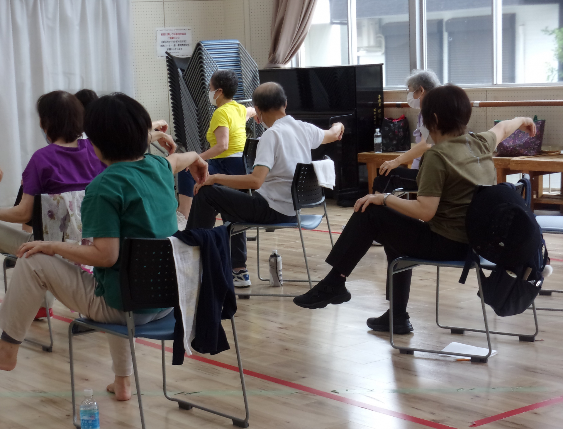 イスを使って準備運動の後、太極拳の基本動作を学び、仕上げは音楽に合わせて、ゆったり太極拳。