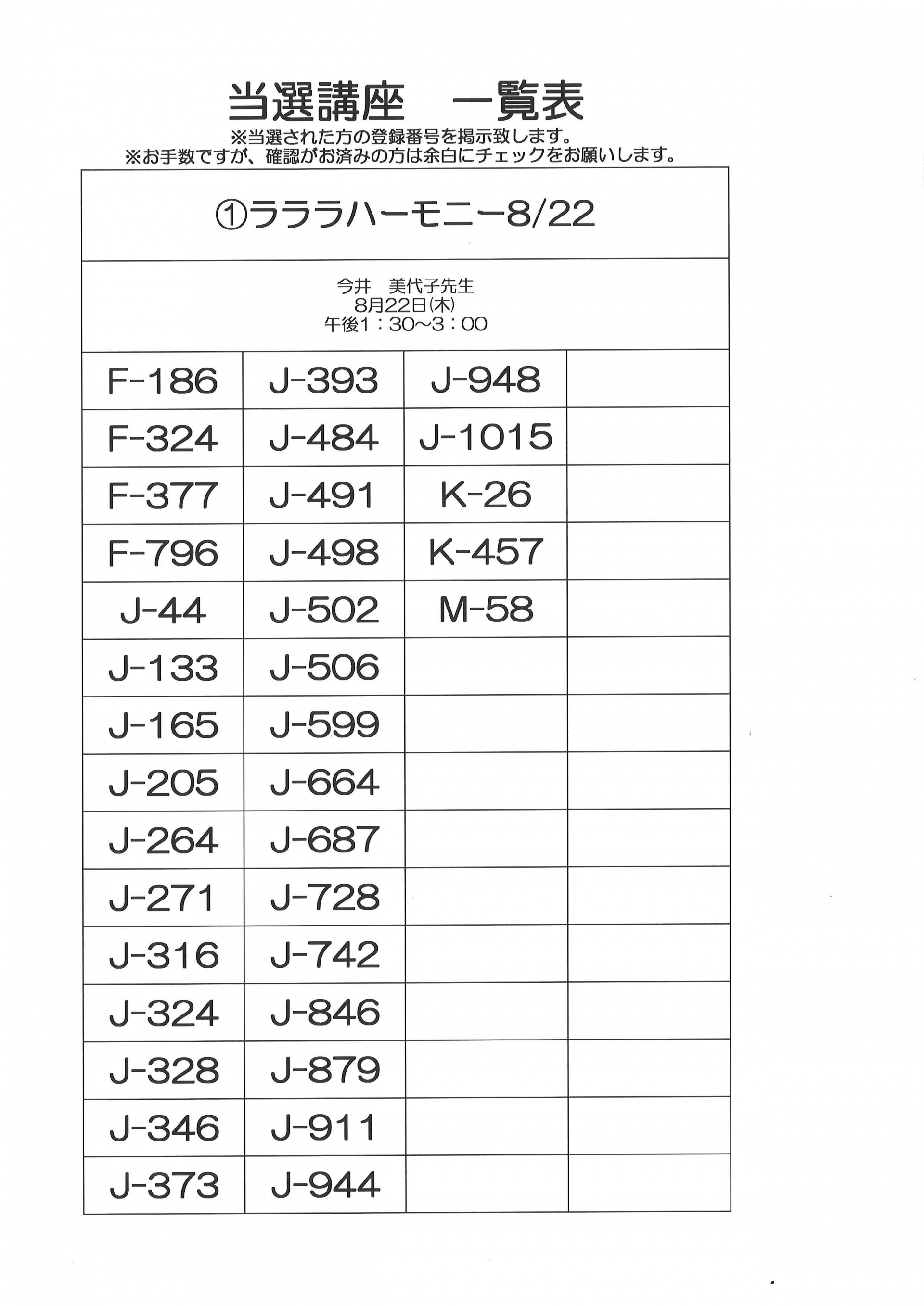 2024.08.13 お知らせ 9月開催 単発講座 当選一覧 Tweet シェアする 【単発講座】8月・9月開催 単発講座の当選一覧です。どうぞご確認ください。 城東ふれあいセンター 前の記事 2024.08.13 お知らせ 【食べるにこだわる講座】~骨を強くしよう!~ 次の記事 2024.08.12 お知らせ はじめての太極拳 一覧へ戻る