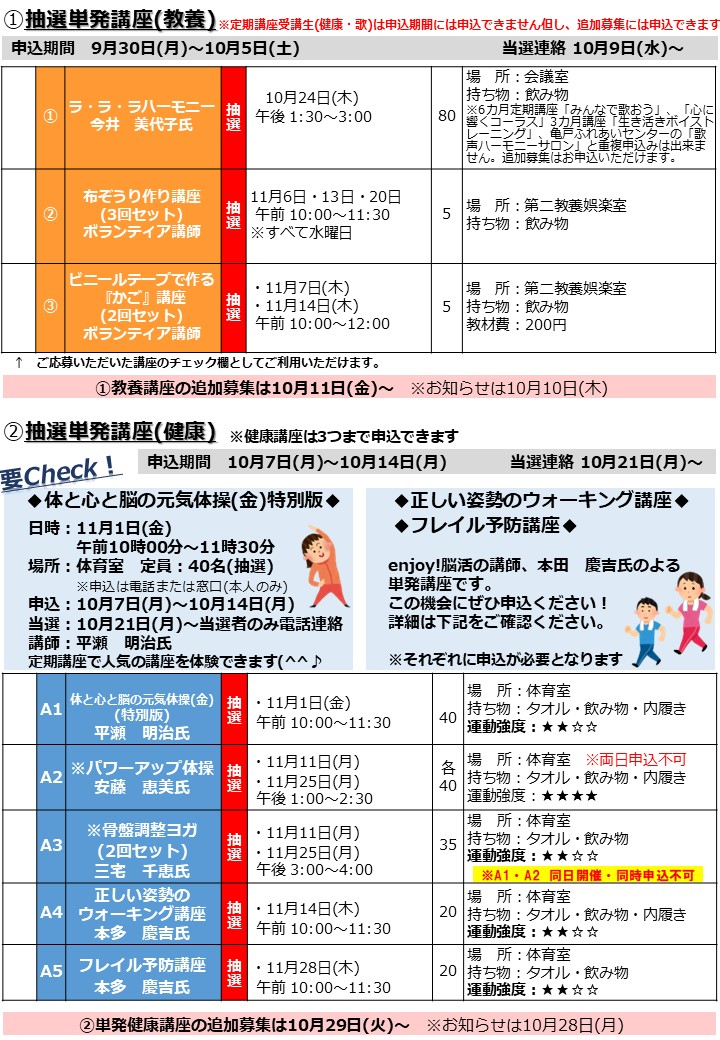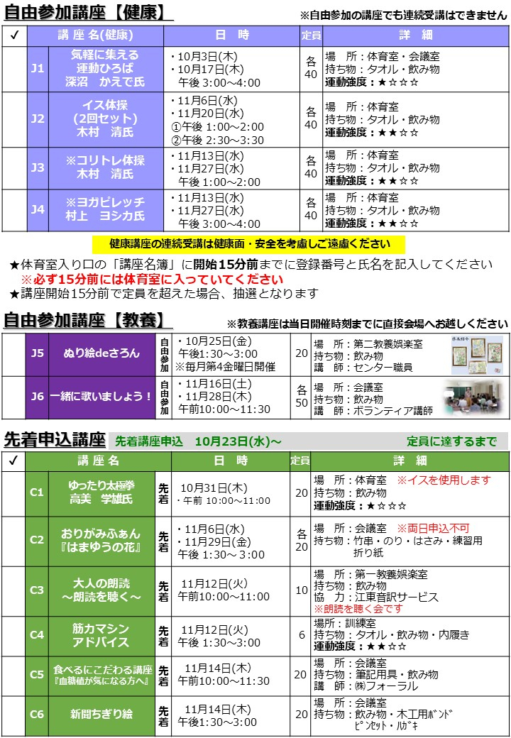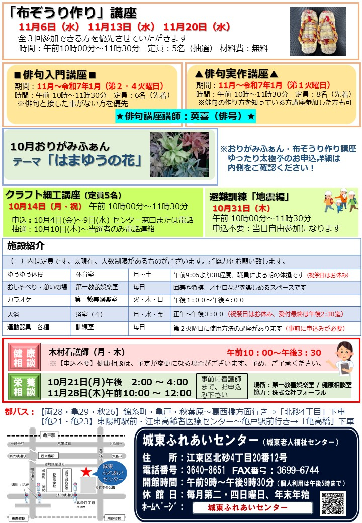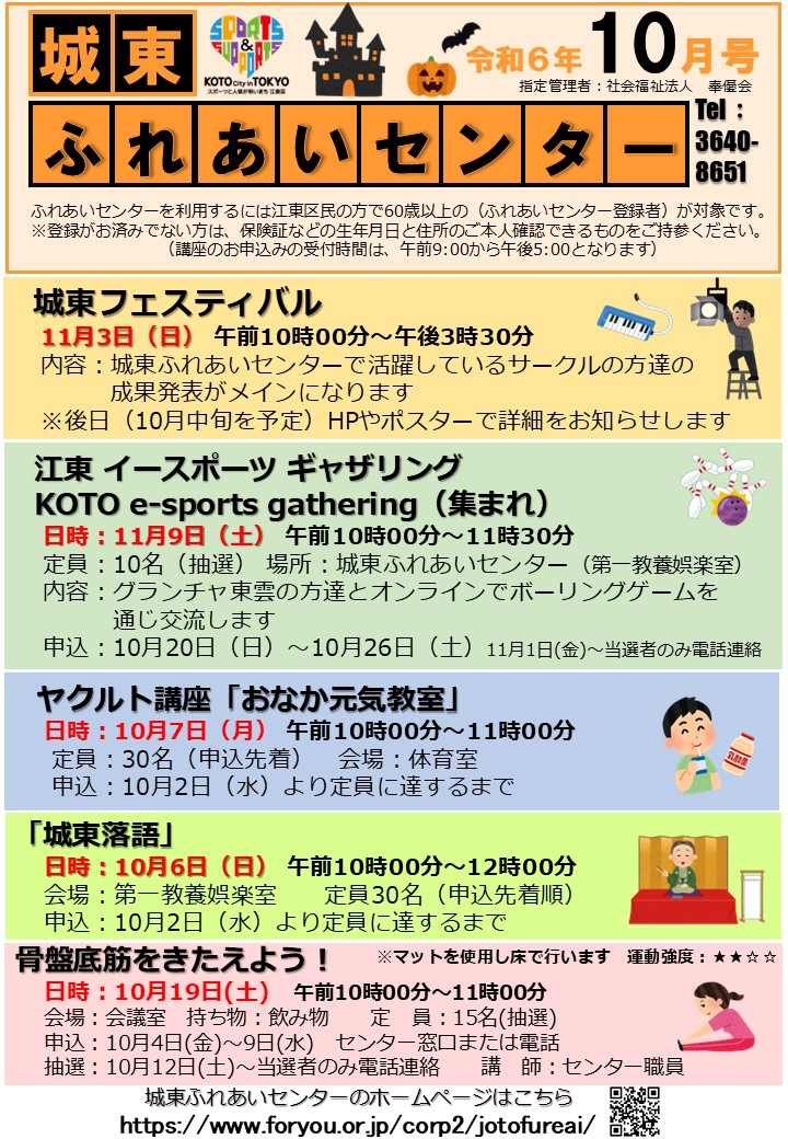 皆さん10月もぜひ城東ふれあいセンターへお越しください、お待ちしております。