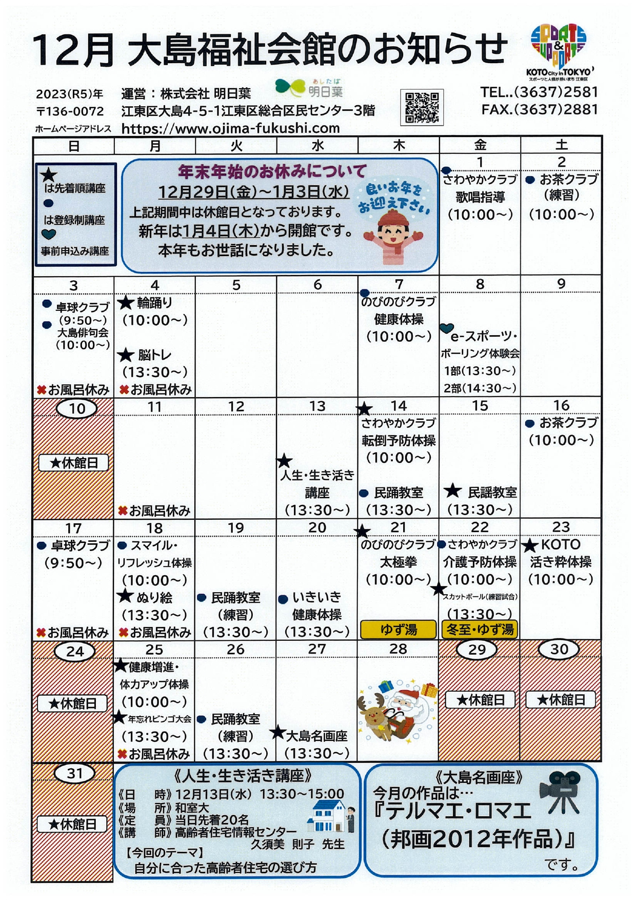 12/8(金)に城東ふれあいセンター出張講座を行います!