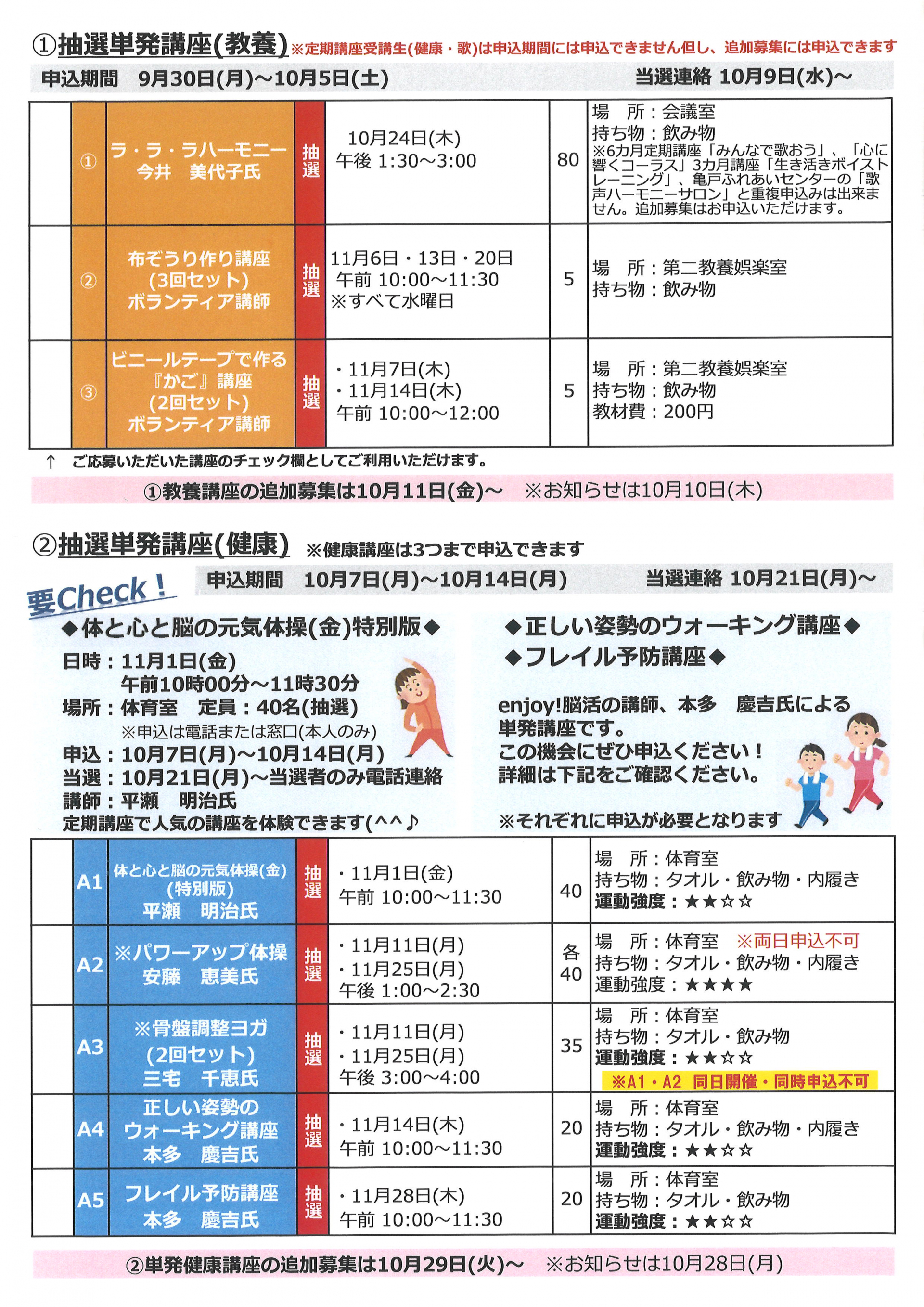 皆さん10月もぜひ城東ふれあいセンターへお越しください、お待ちしております。