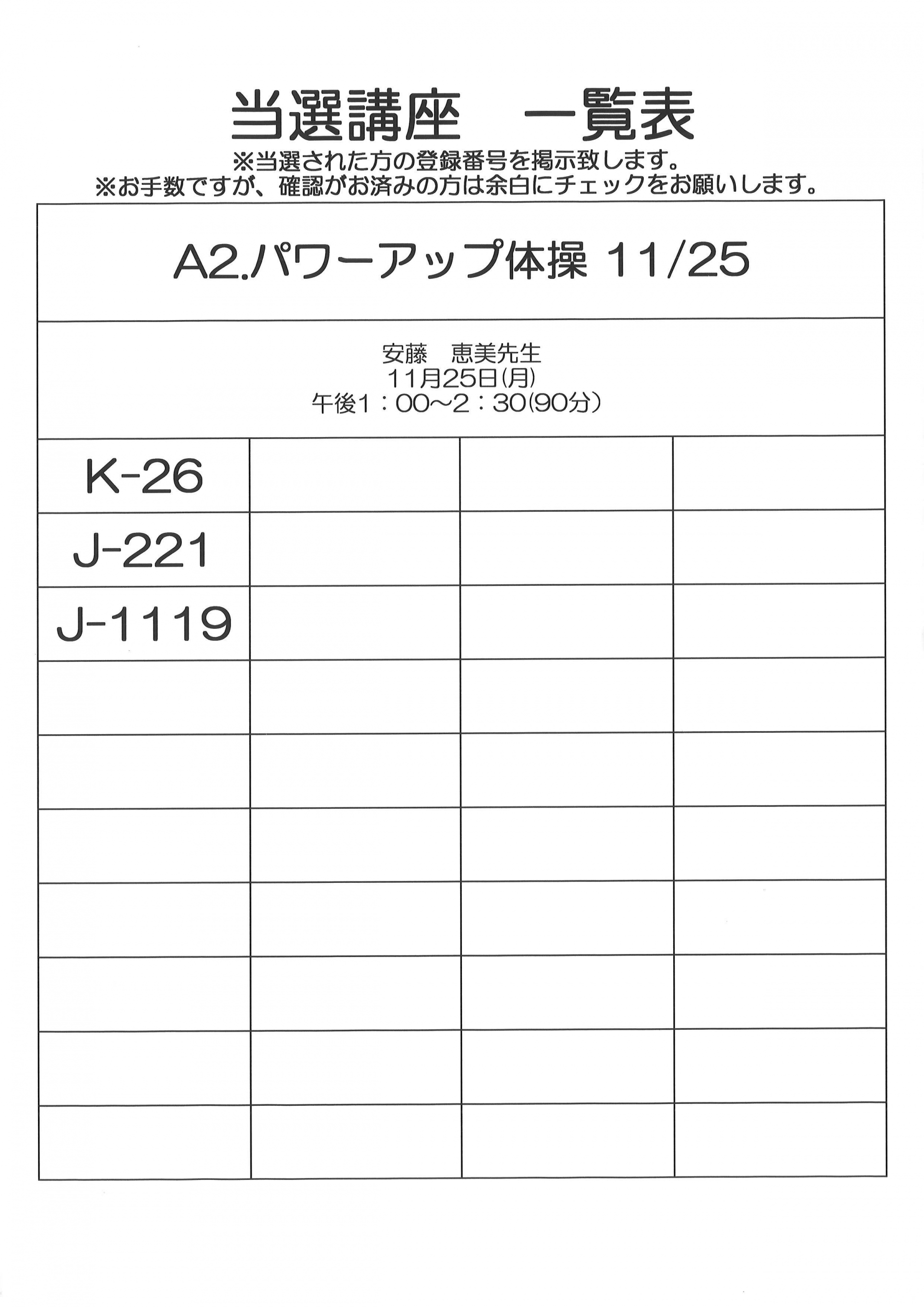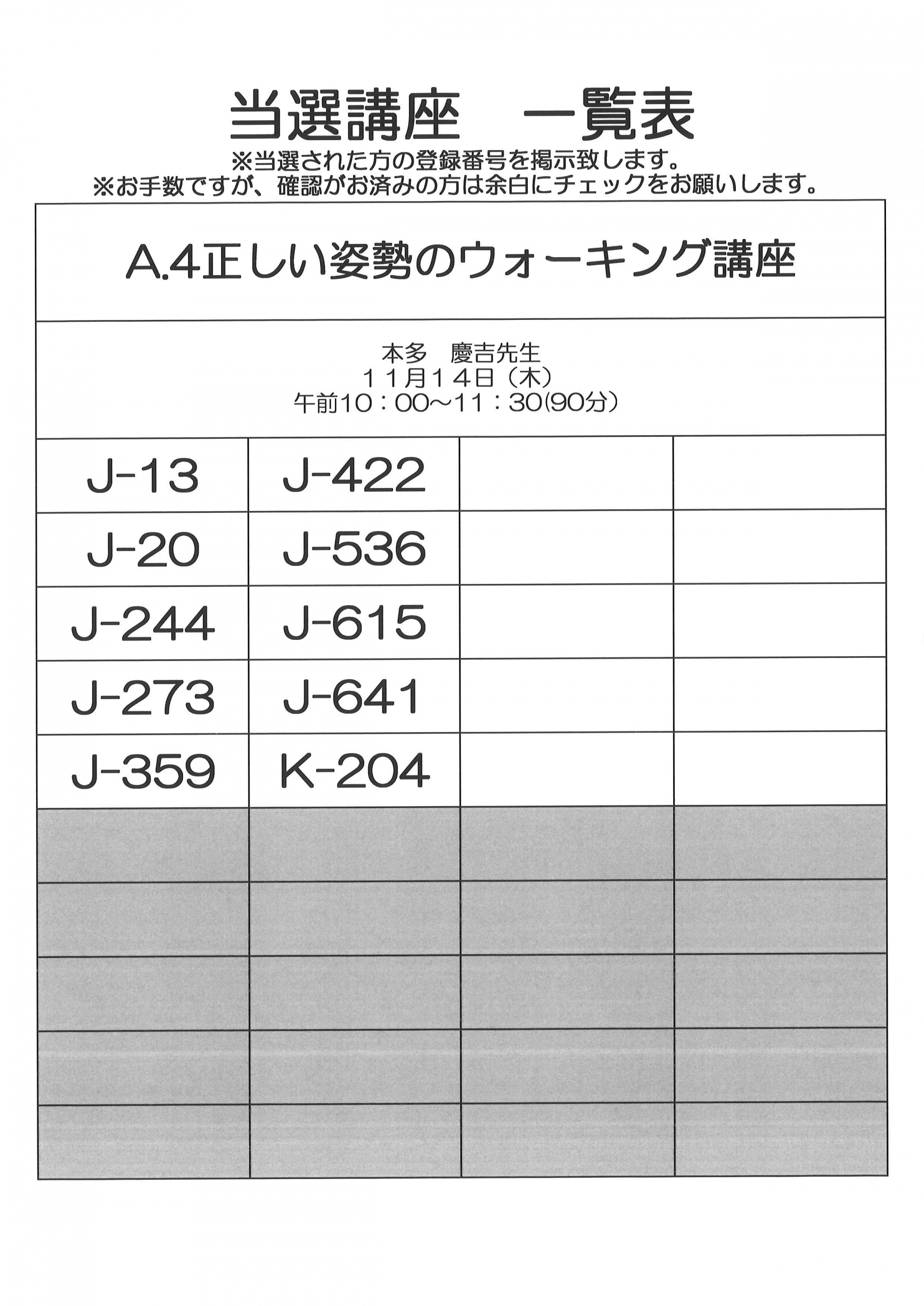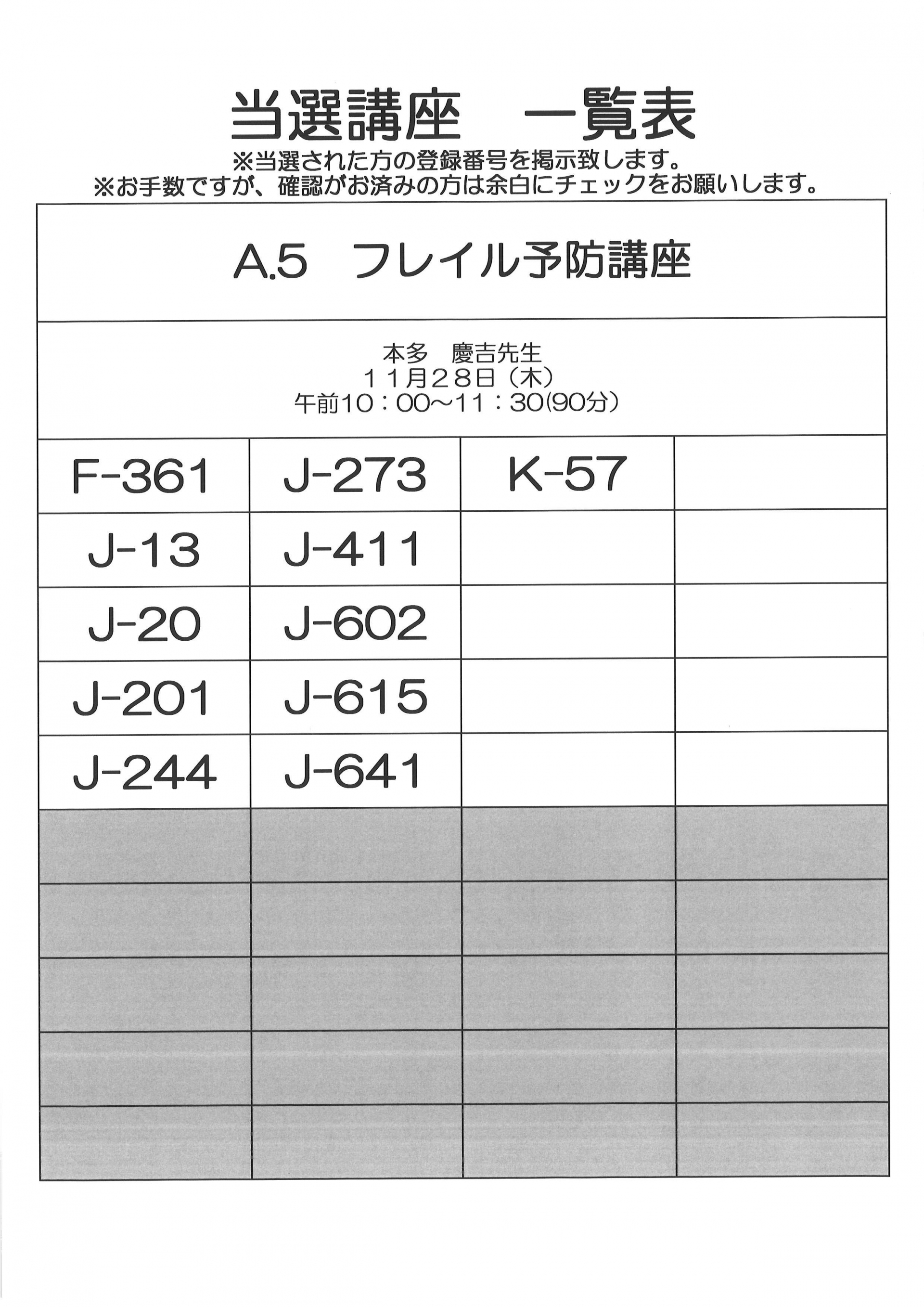 11月開催 単発講座(健康)当選者一覧