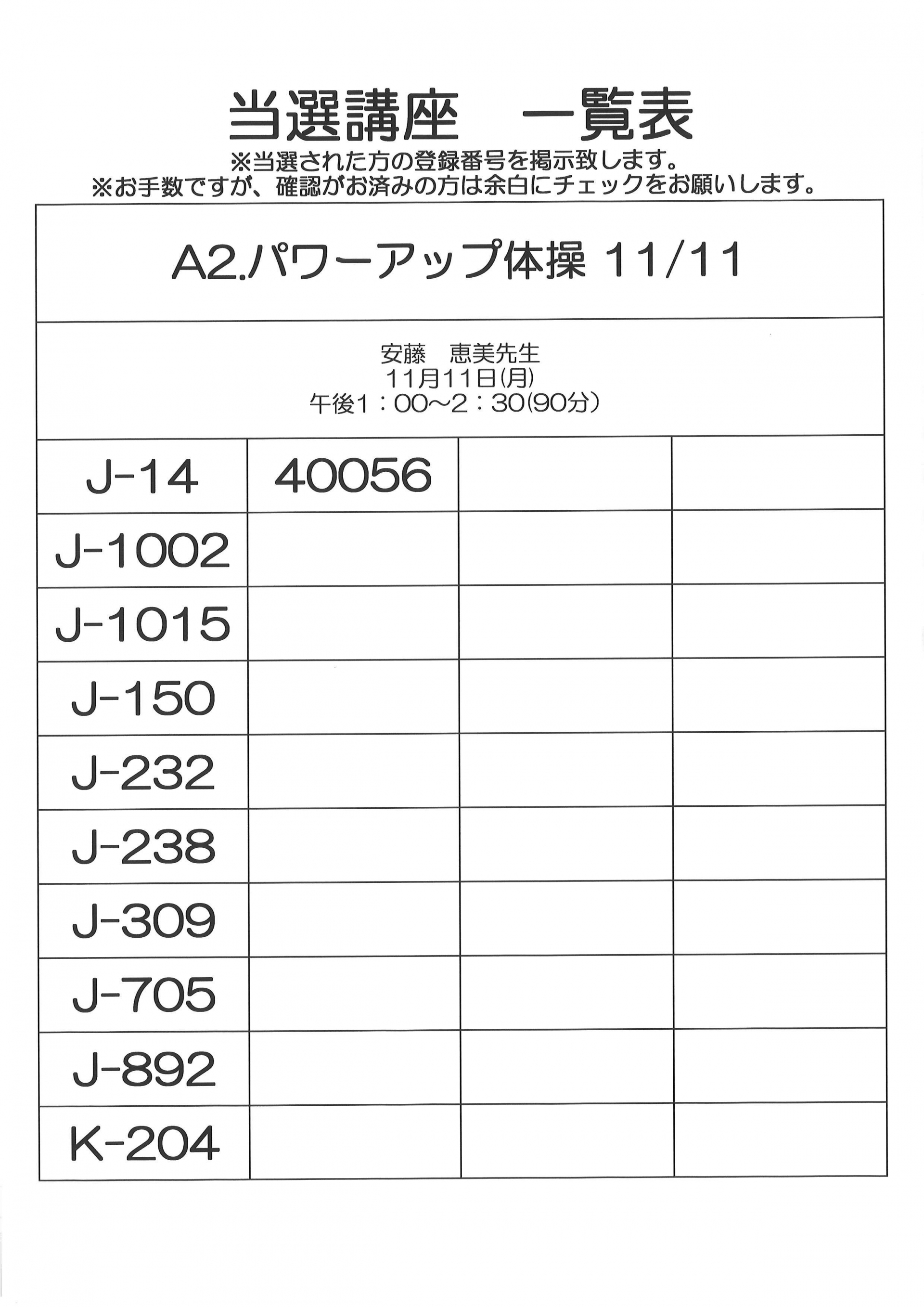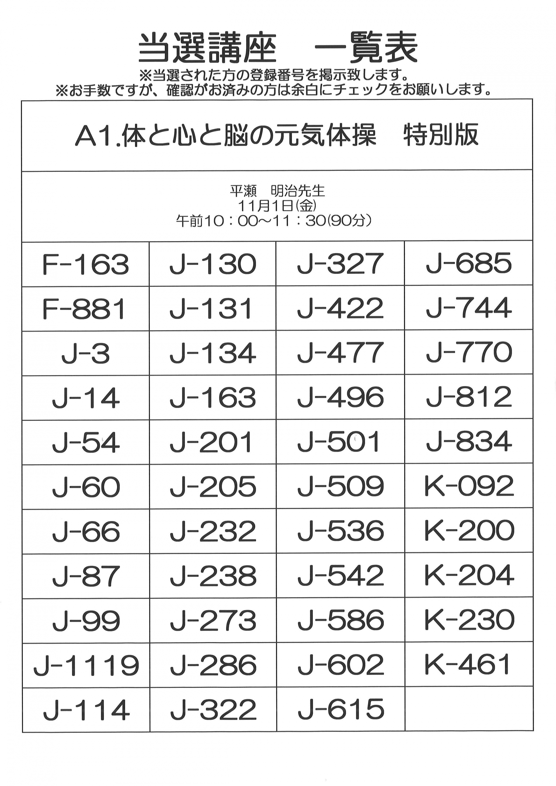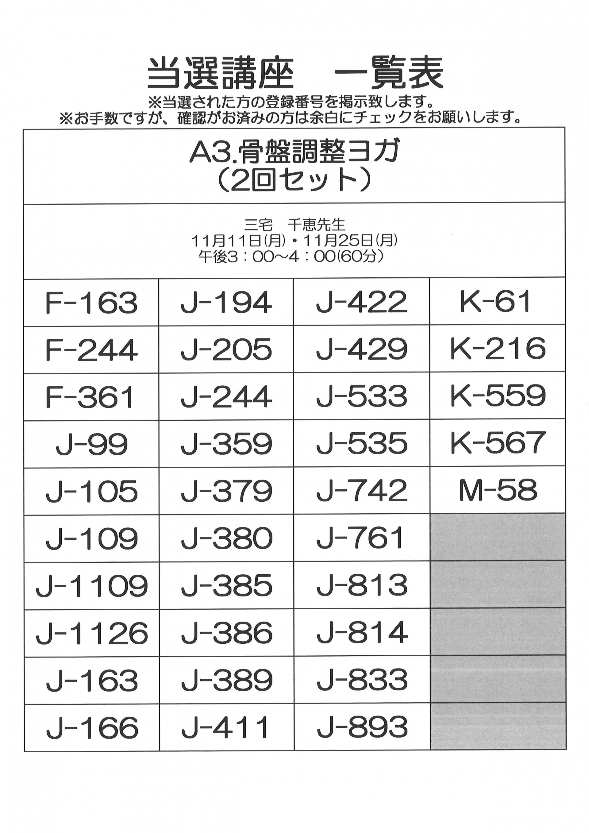 11月開催 単発講座(健康)当選者一覧