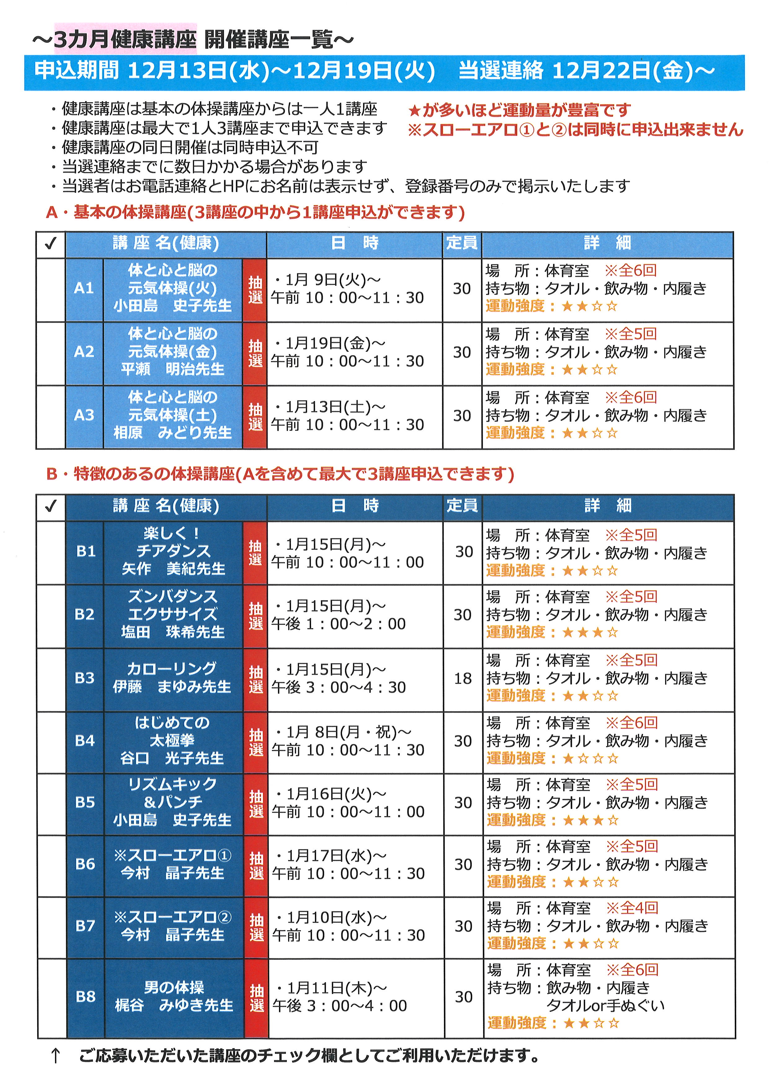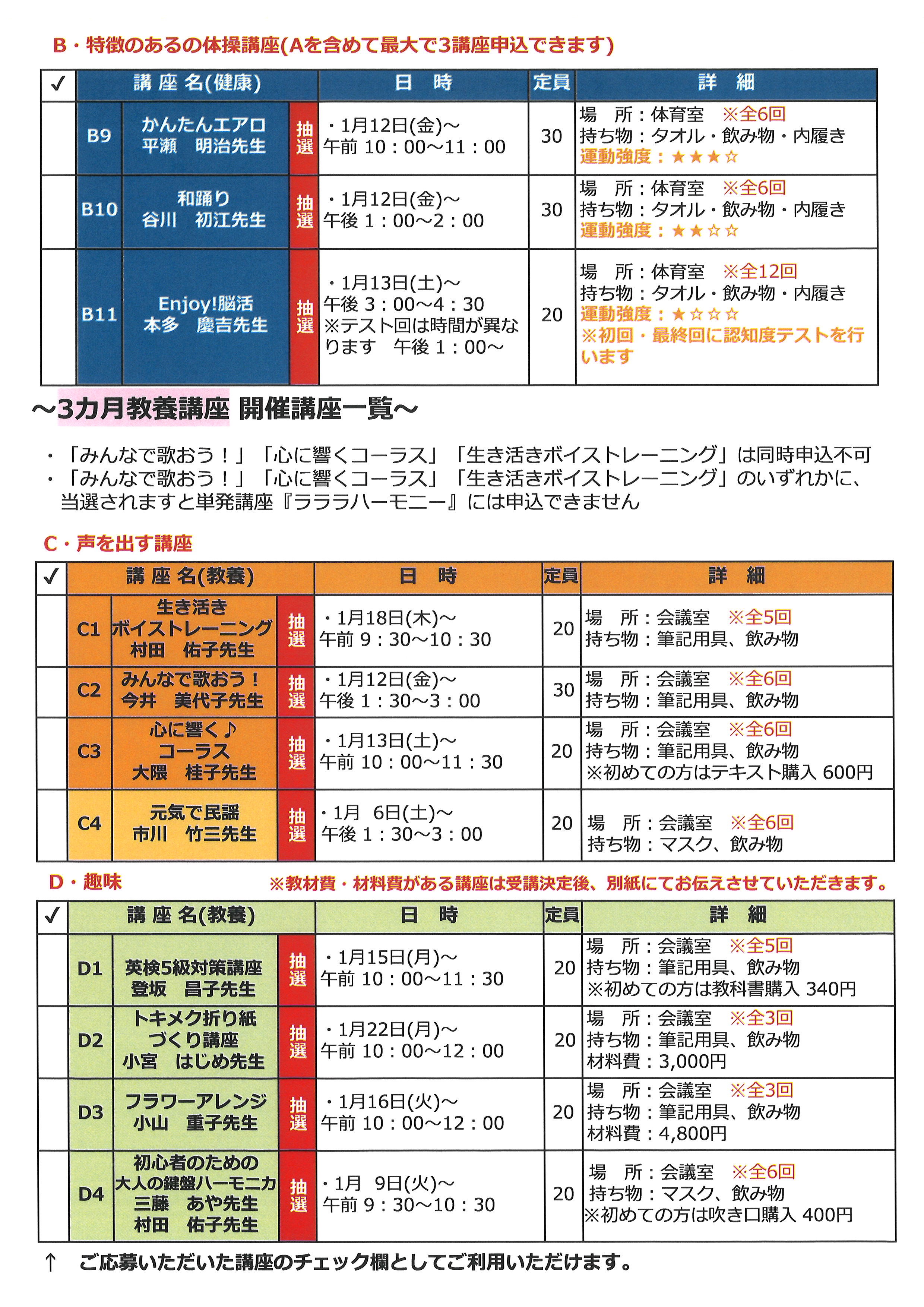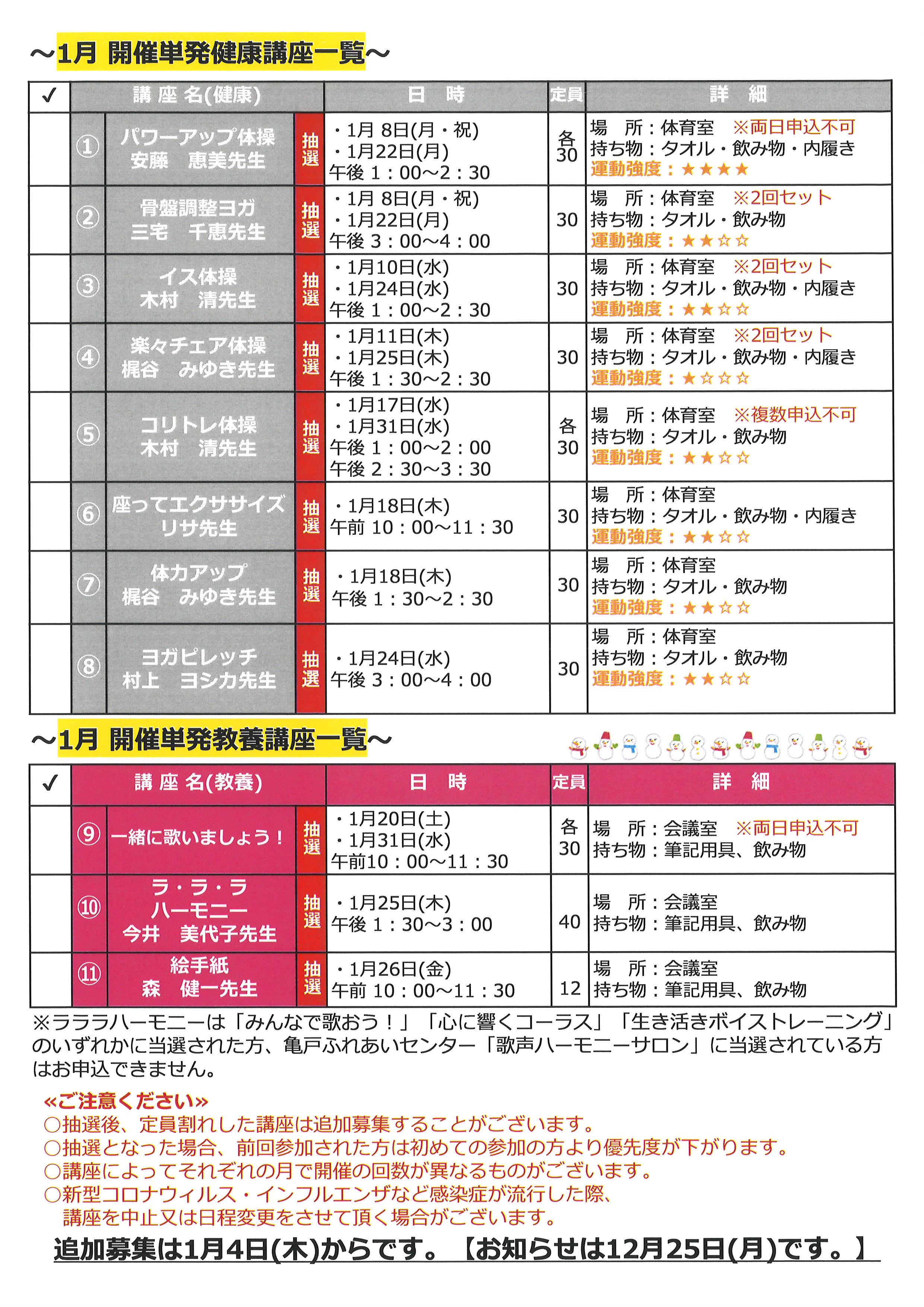 1月再開に向け、1月開催予定の講座案内を本日発行いたしました。