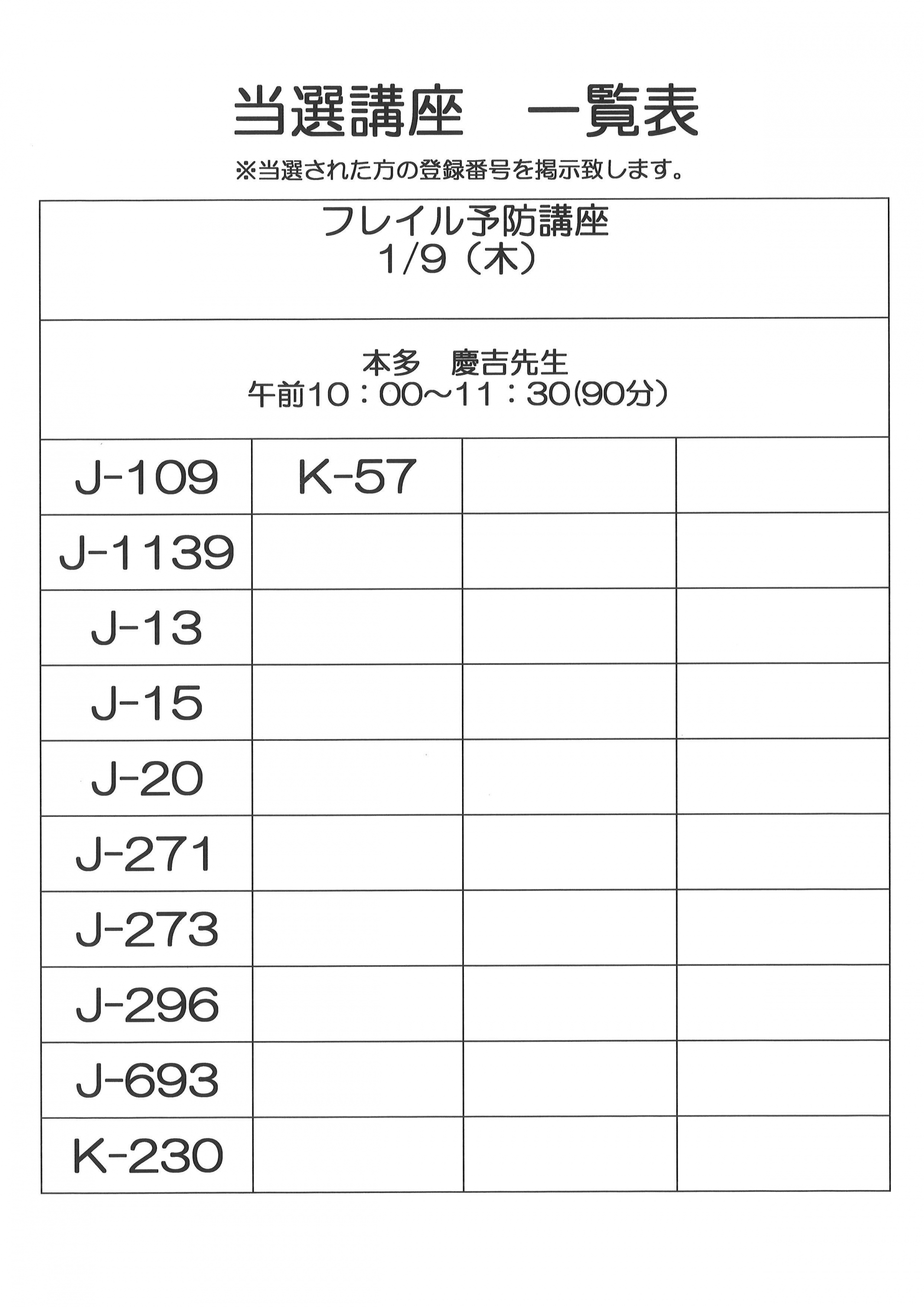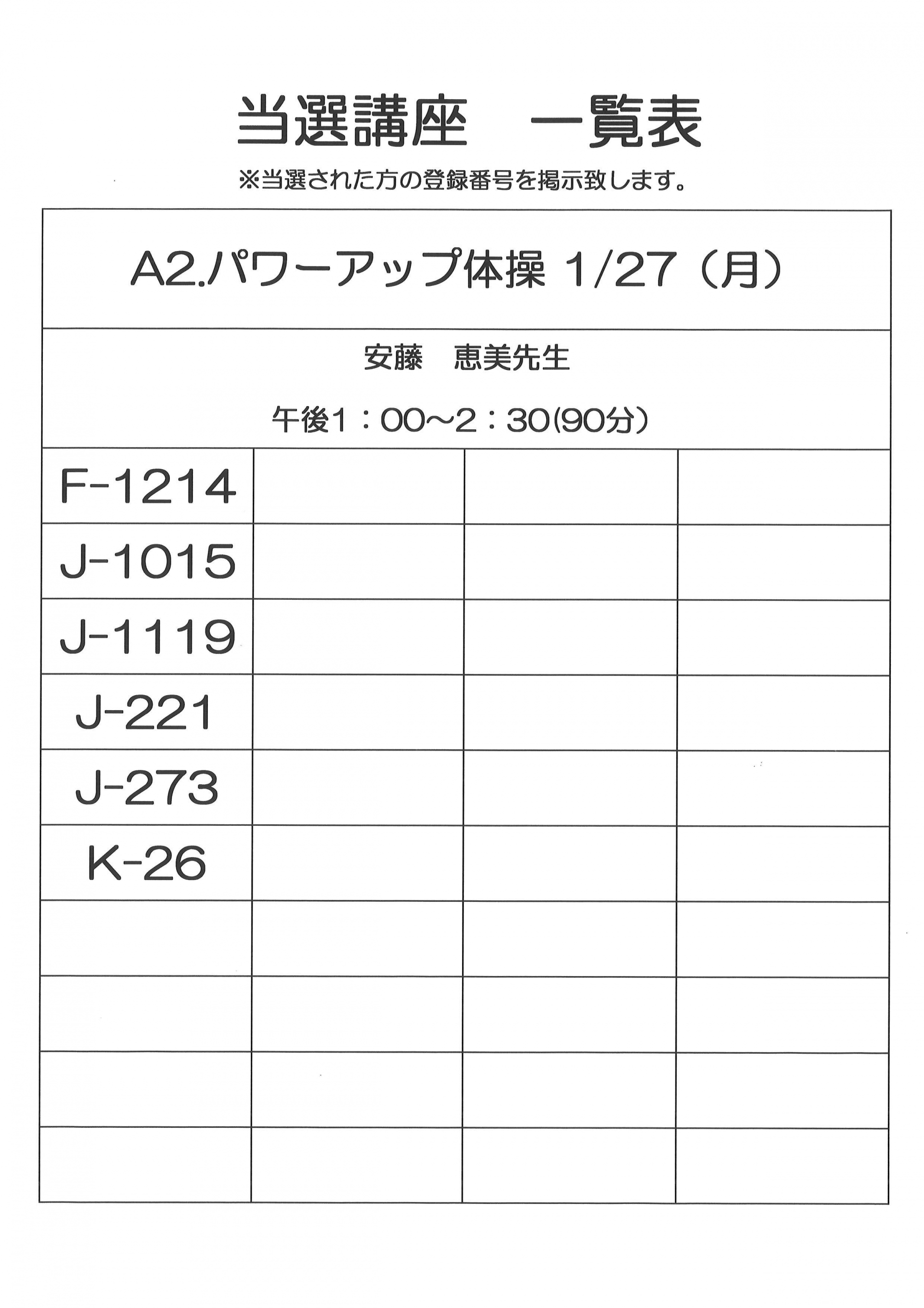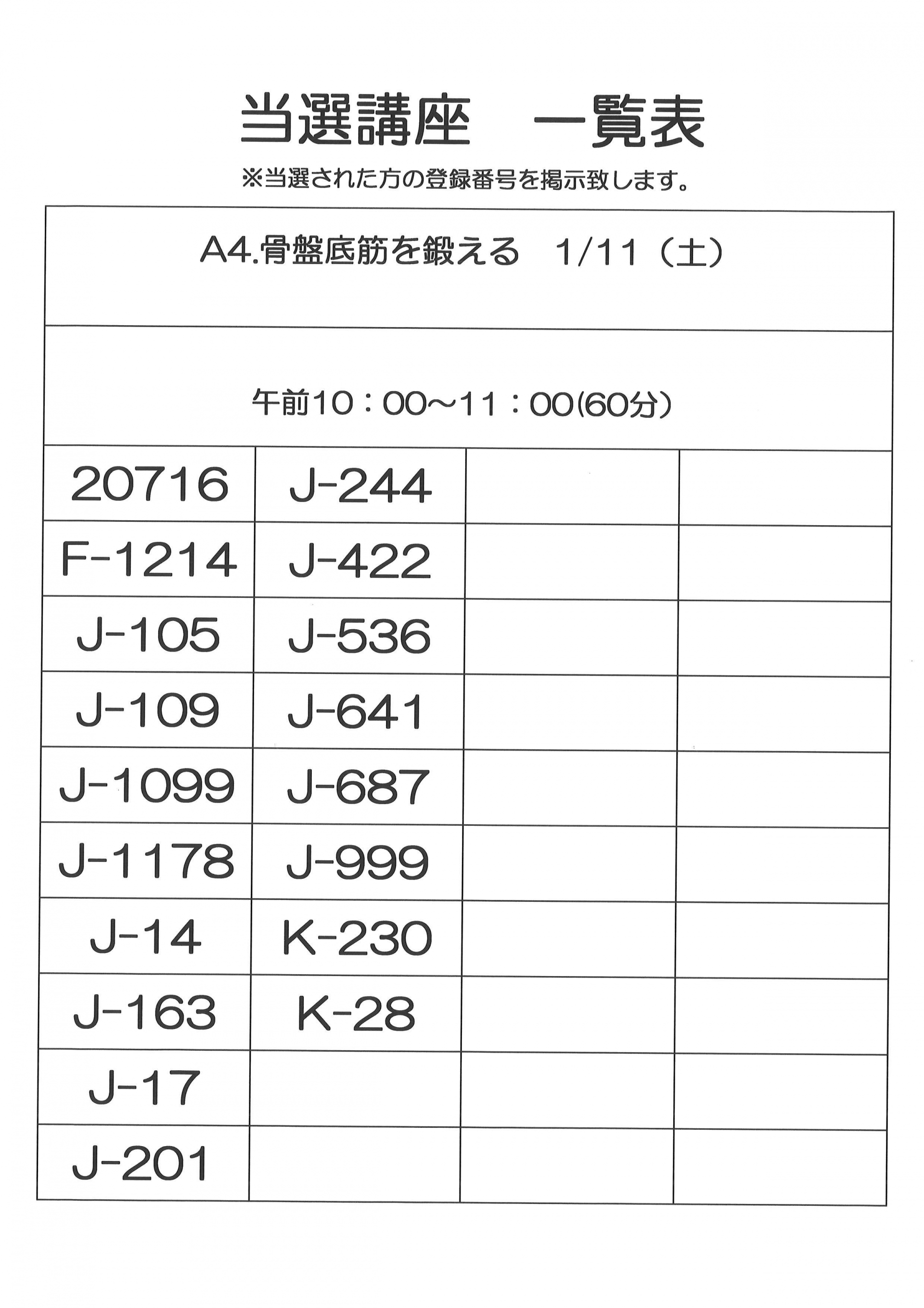 2024.12.09 活動報告 1月開催 単発講座 当選者一覧 (健康) Tweet シェアする 1月開催 単発講座 当選者一覧になります。 ご確認くださいますようお願いいたします。 城東ふれあいセンター T.Y 前の記事 2024.12.09 活動報告 12月・1月開催 単発講座 当選者一覧(教養) 次の記事 2024.12.05 活動報告 Autum 2024‘ 一覧へ戻る