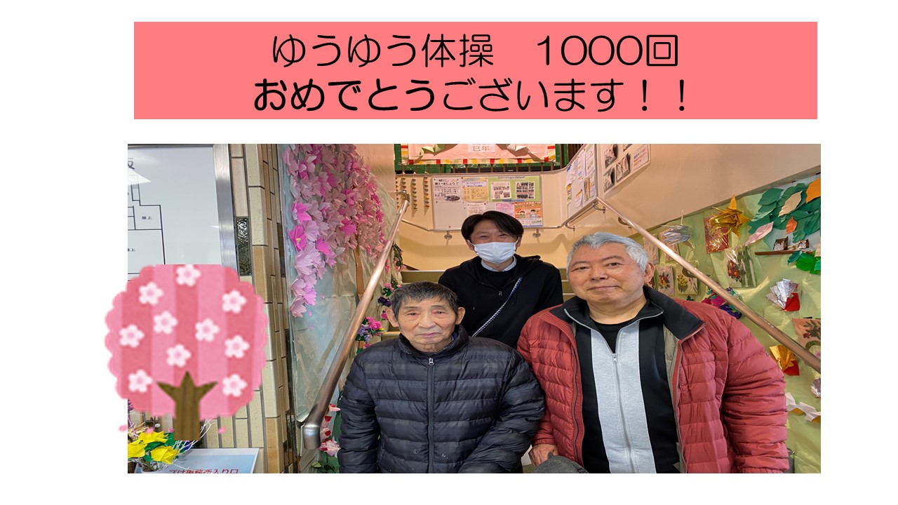3/17にOさまが『ゆうゆう体操』のご参加、1000回となりました。