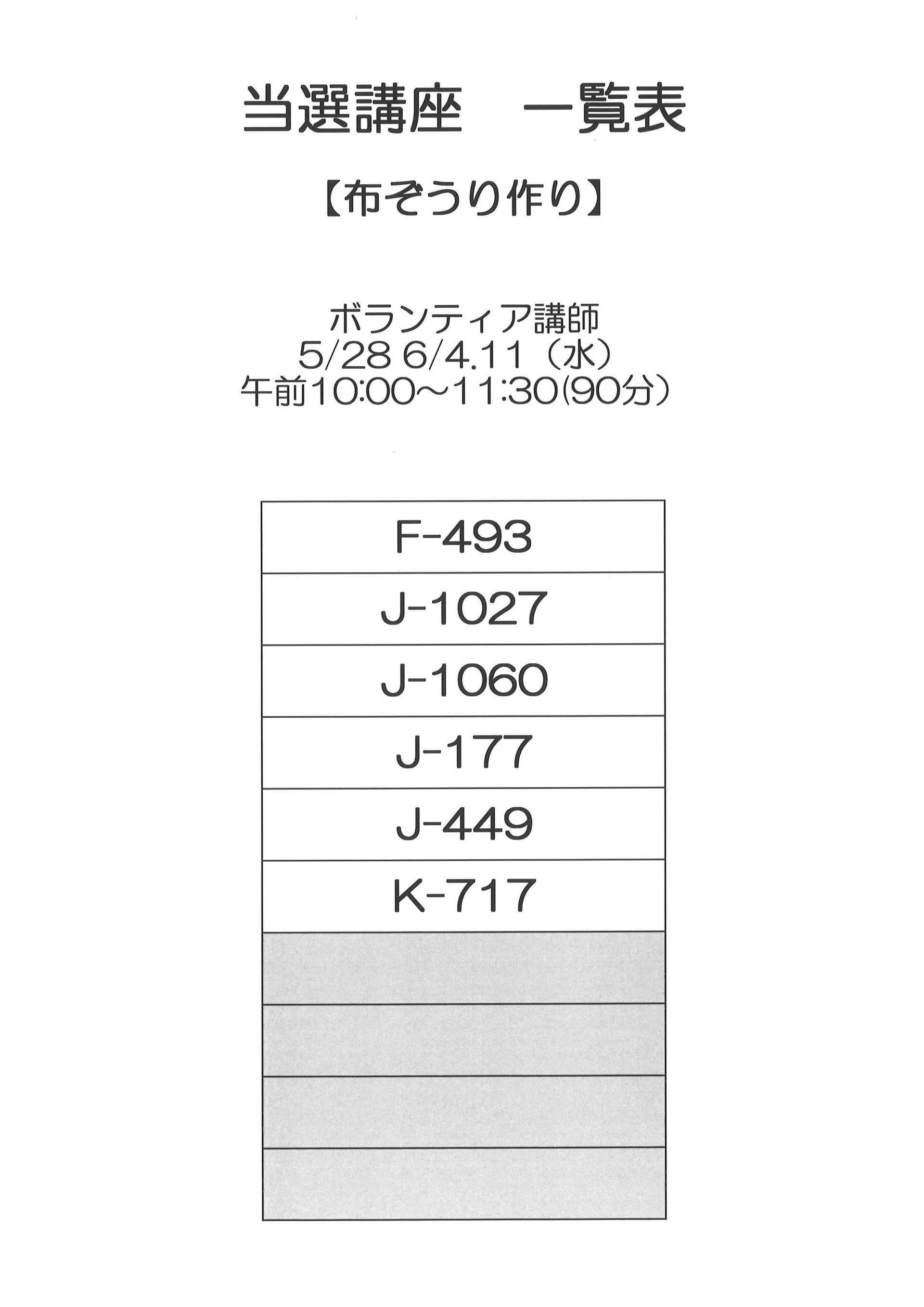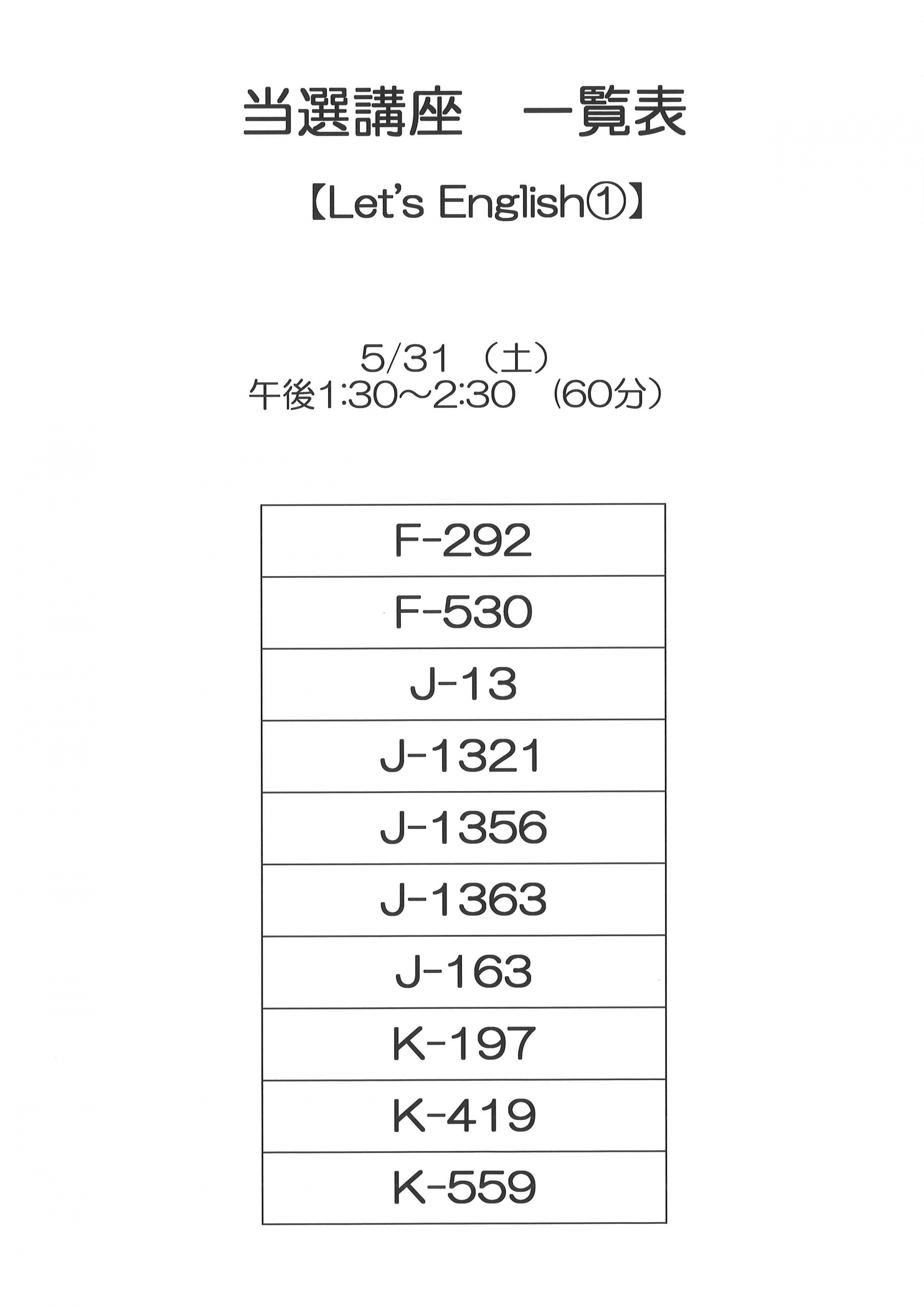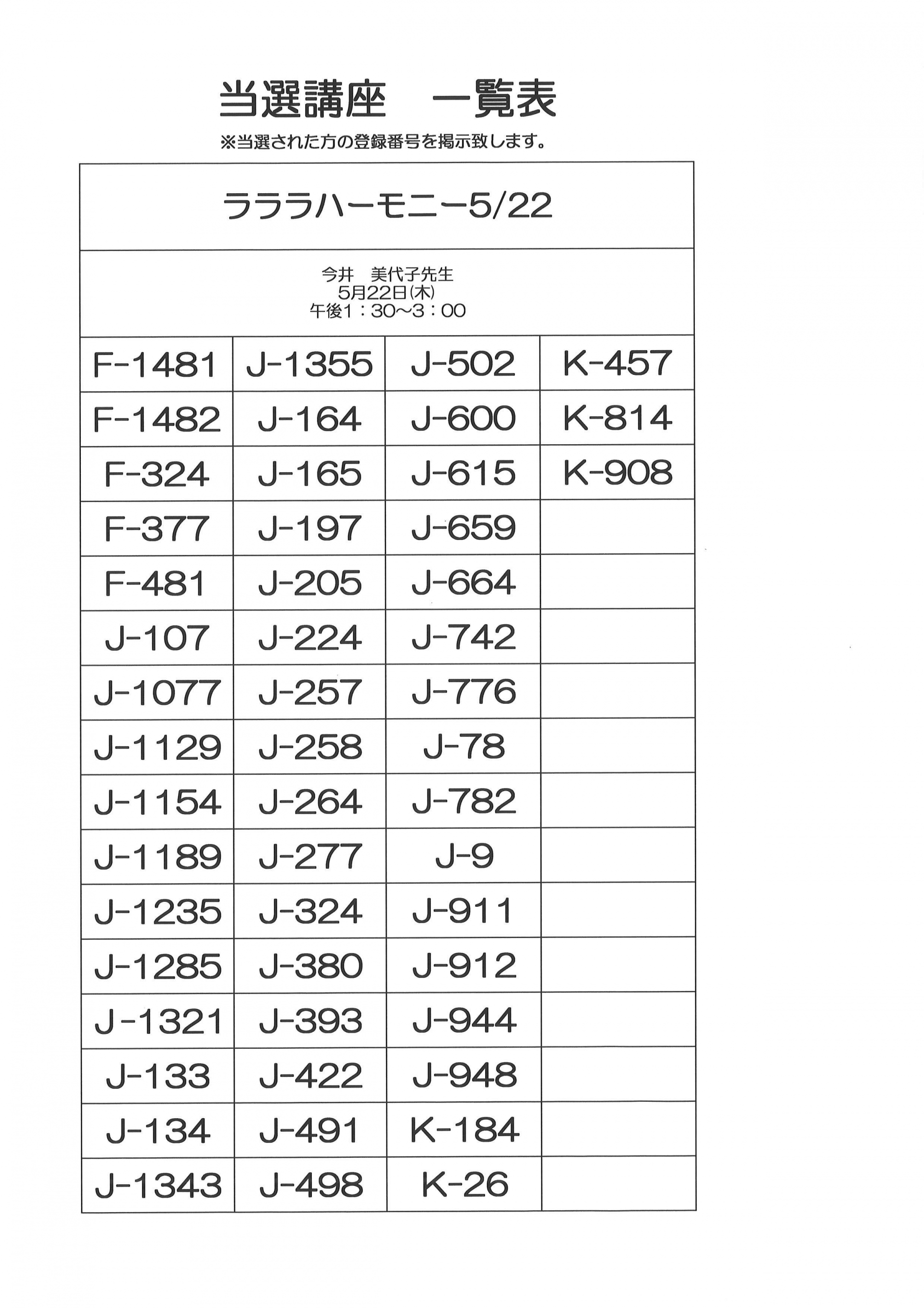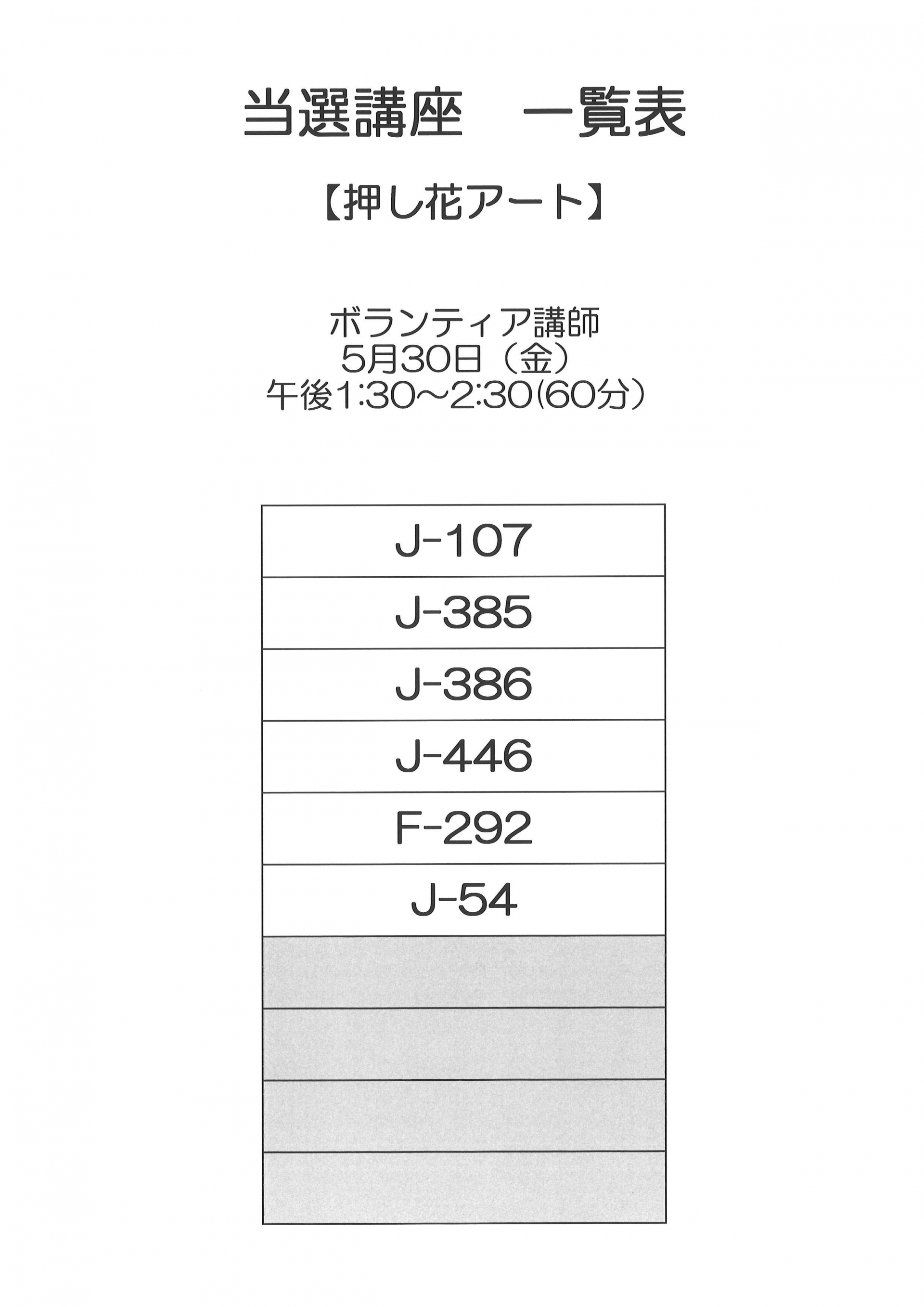 2025.05.07 活動報告 5月・6月開催 単発講座 当選者一覧 Tweet シェアする こんにちは!! 5月・6月開催 単発講座の当選者一覧です。 どうぞご確認ください。 城東ふれあいセンター T.Y 前の記事 2025.05.07 活動報告 春のenjoy!コンサート 次の記事 2025.05.06 活動報告 大型連休最終日 一覧へ戻る
