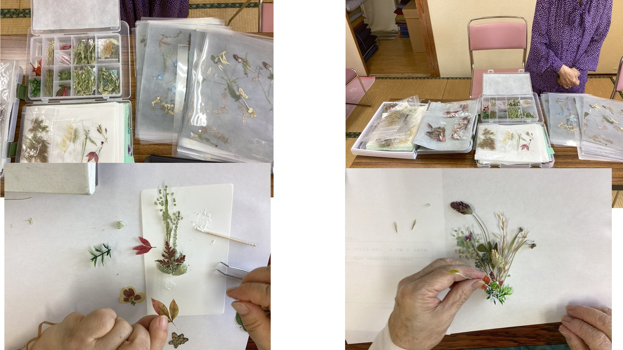 作る作品によって押花も違うそうで先生の作成した押花コレクションの中でも細長いものを選びます。