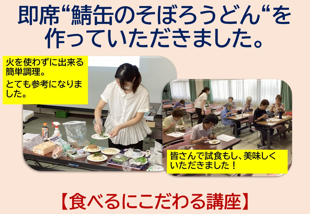 実際に火を使わず簡単に鯖缶と冷凍うどんを解凍しての簡単鯖缶のそぼろうどんを牧さんが作って下さり、皆さんで試食しました。
