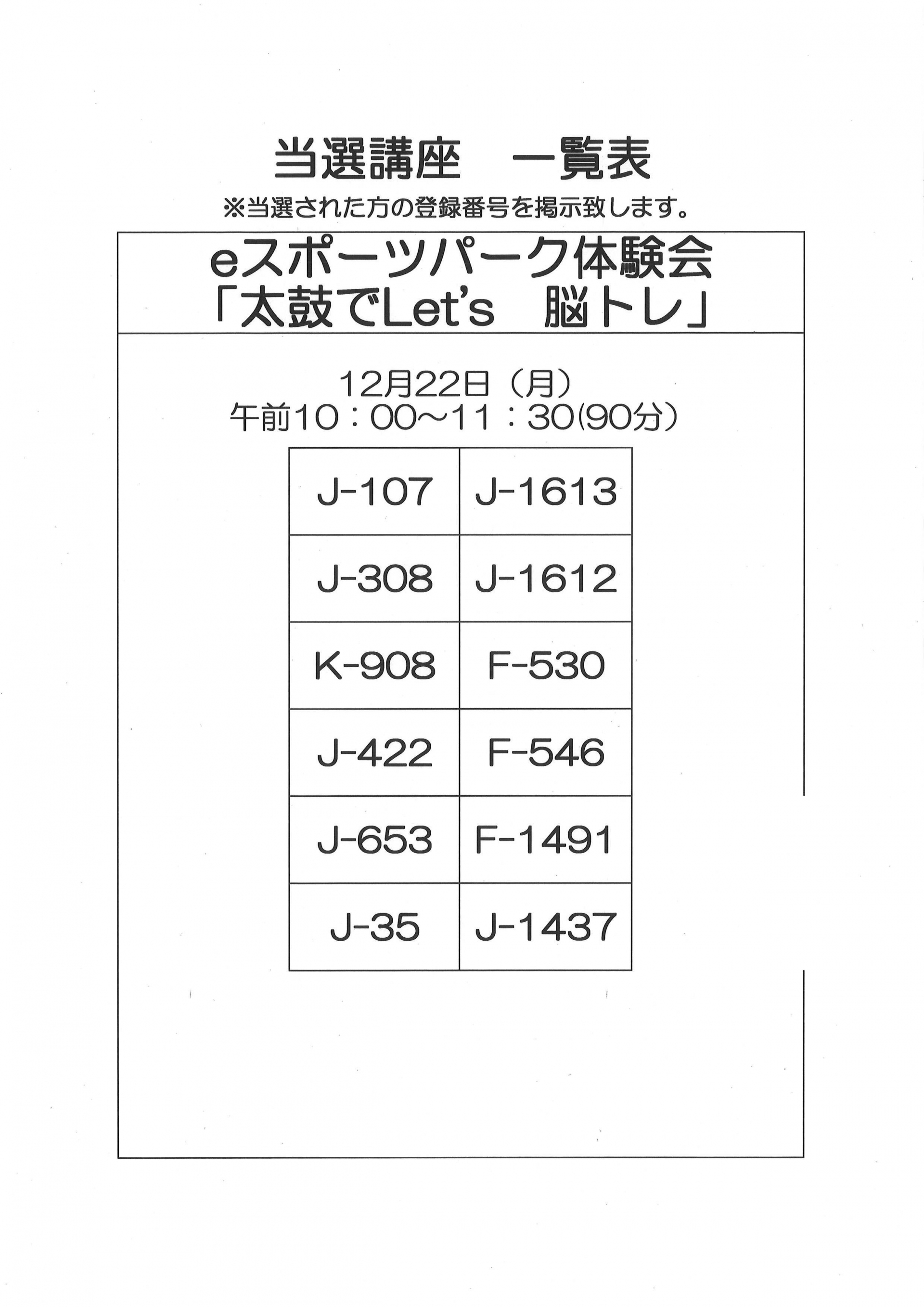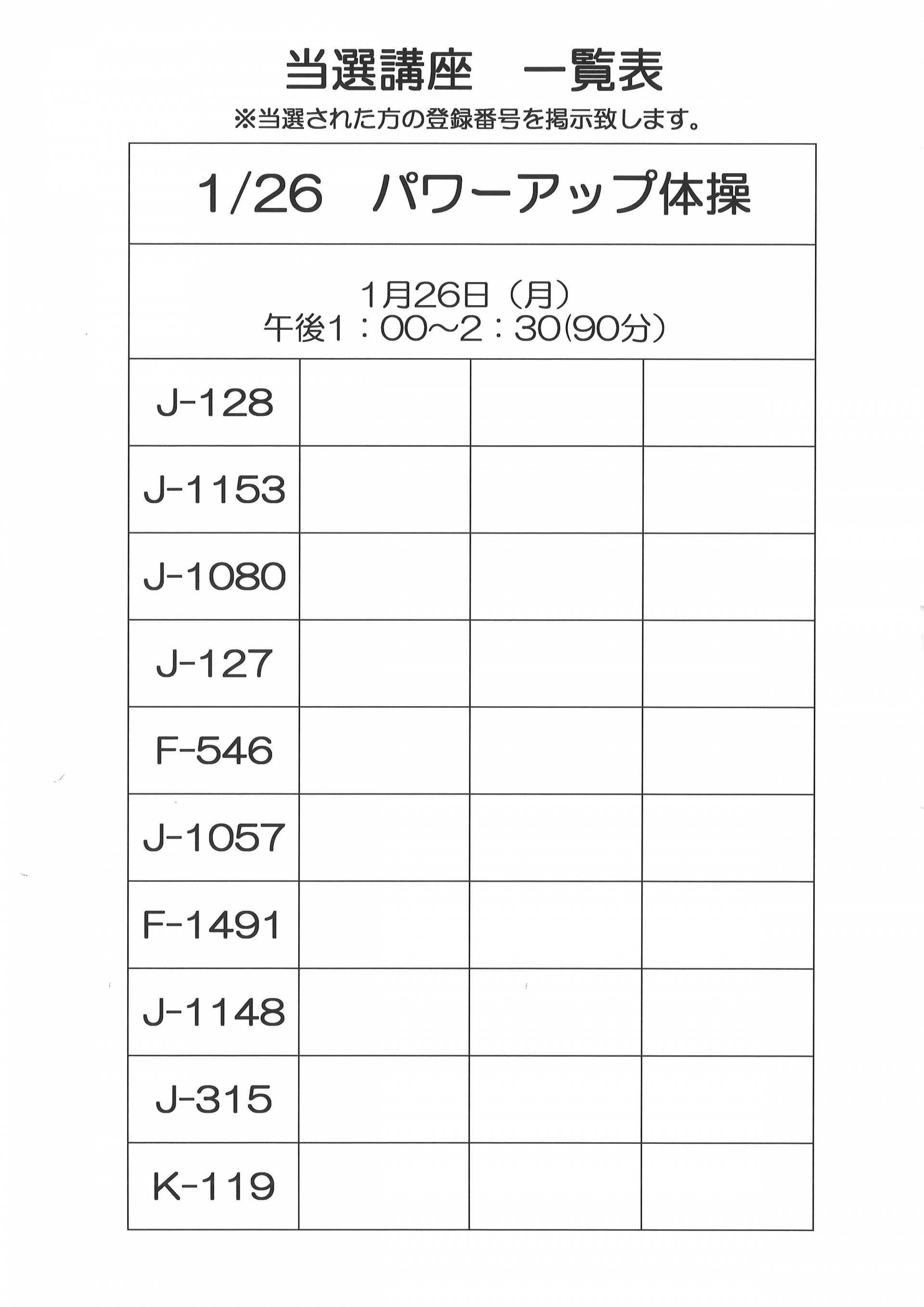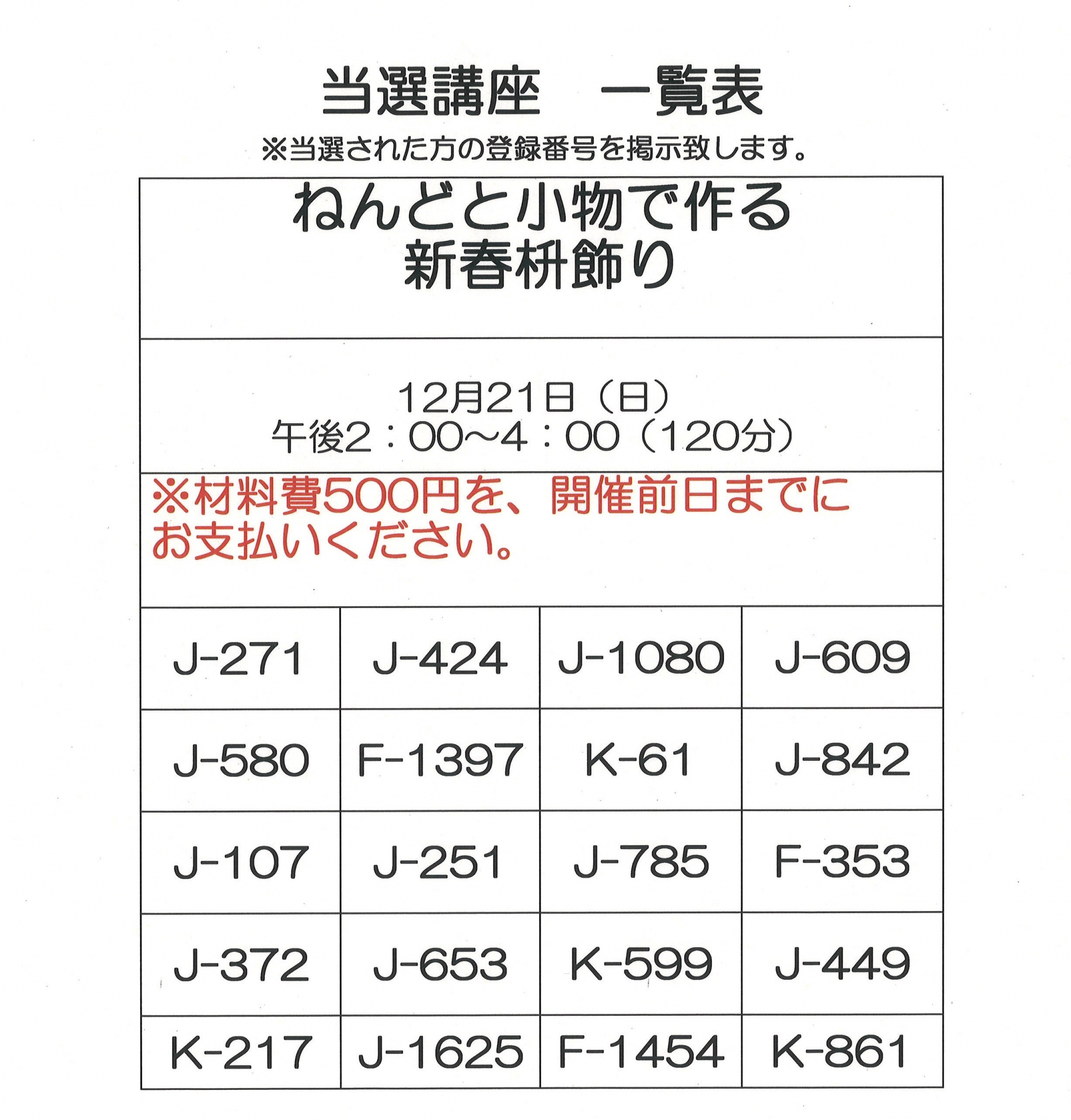 12月・1月開催 単発講座の当選者一覧です。