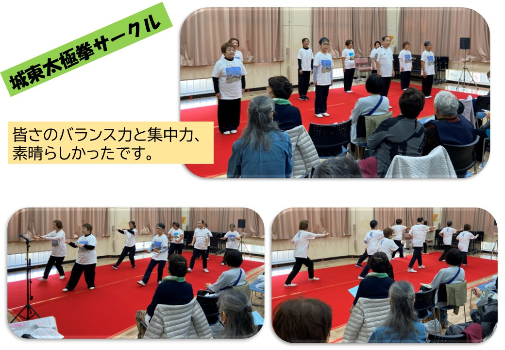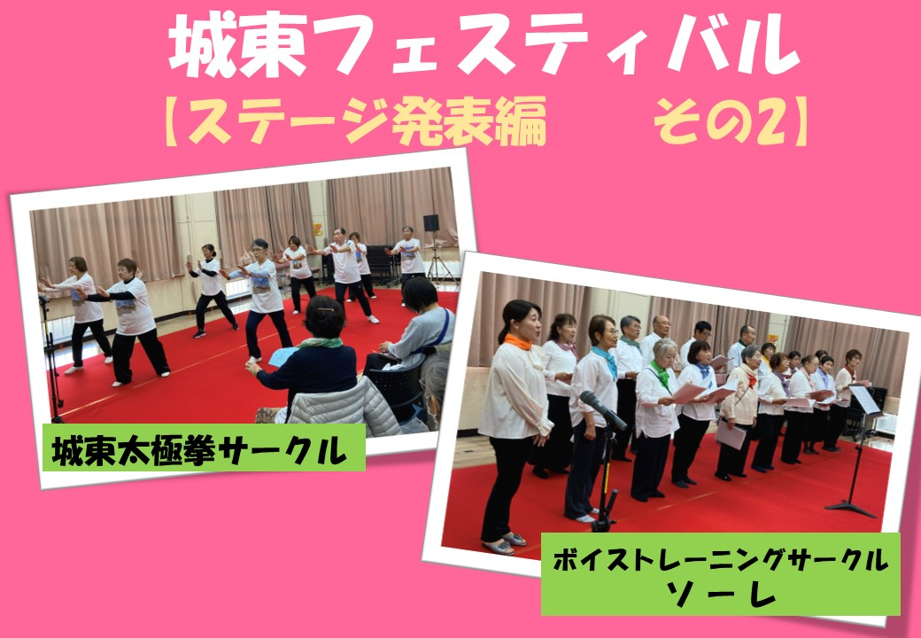 ステージ発表その2では、『城東太極拳サークル』と『ボイストレーニング ソーレ』の発表会の様子をご報告です。