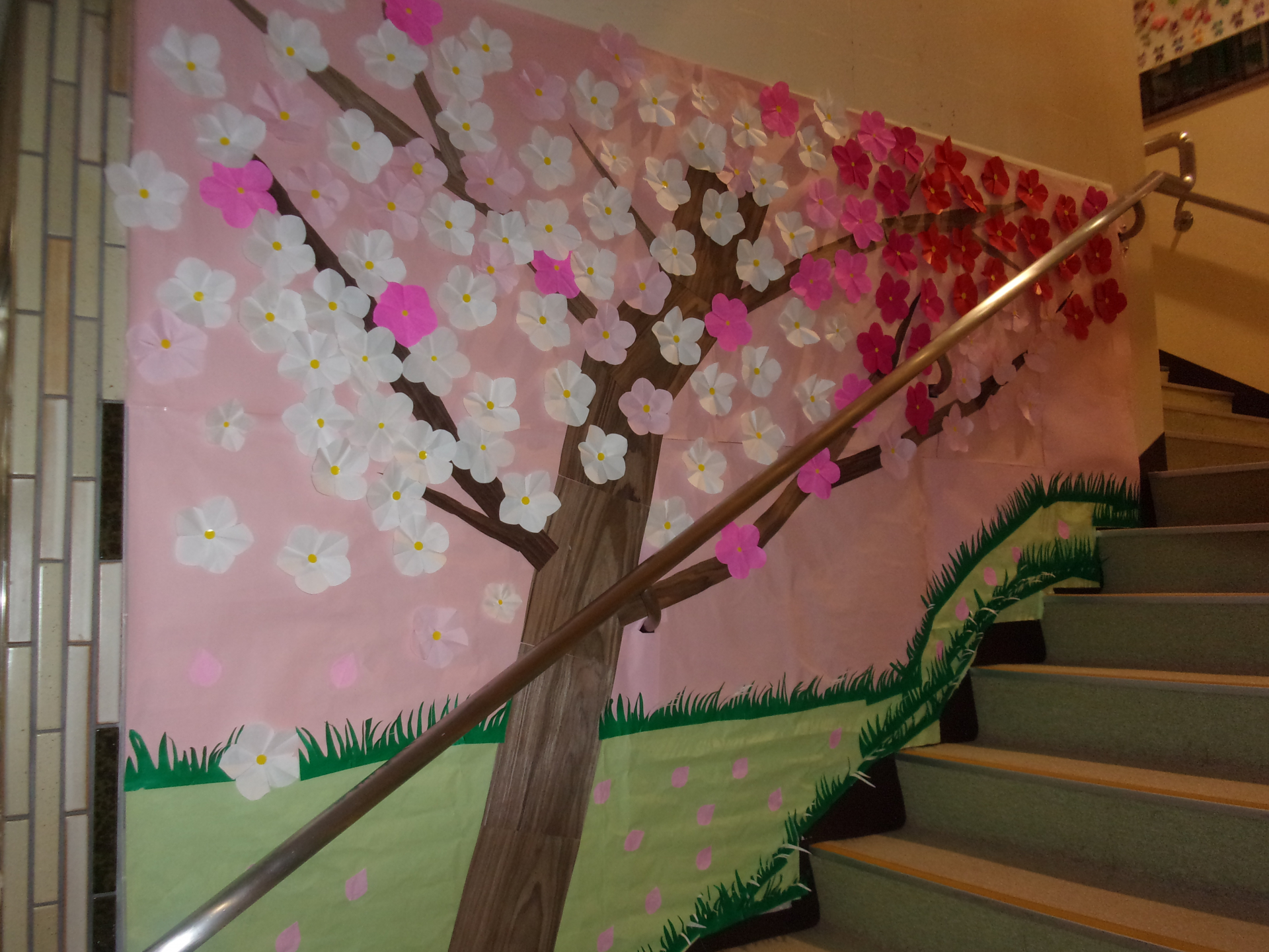 階段左側を、新年に向けて『梅の木』に装飾しました(^_^)