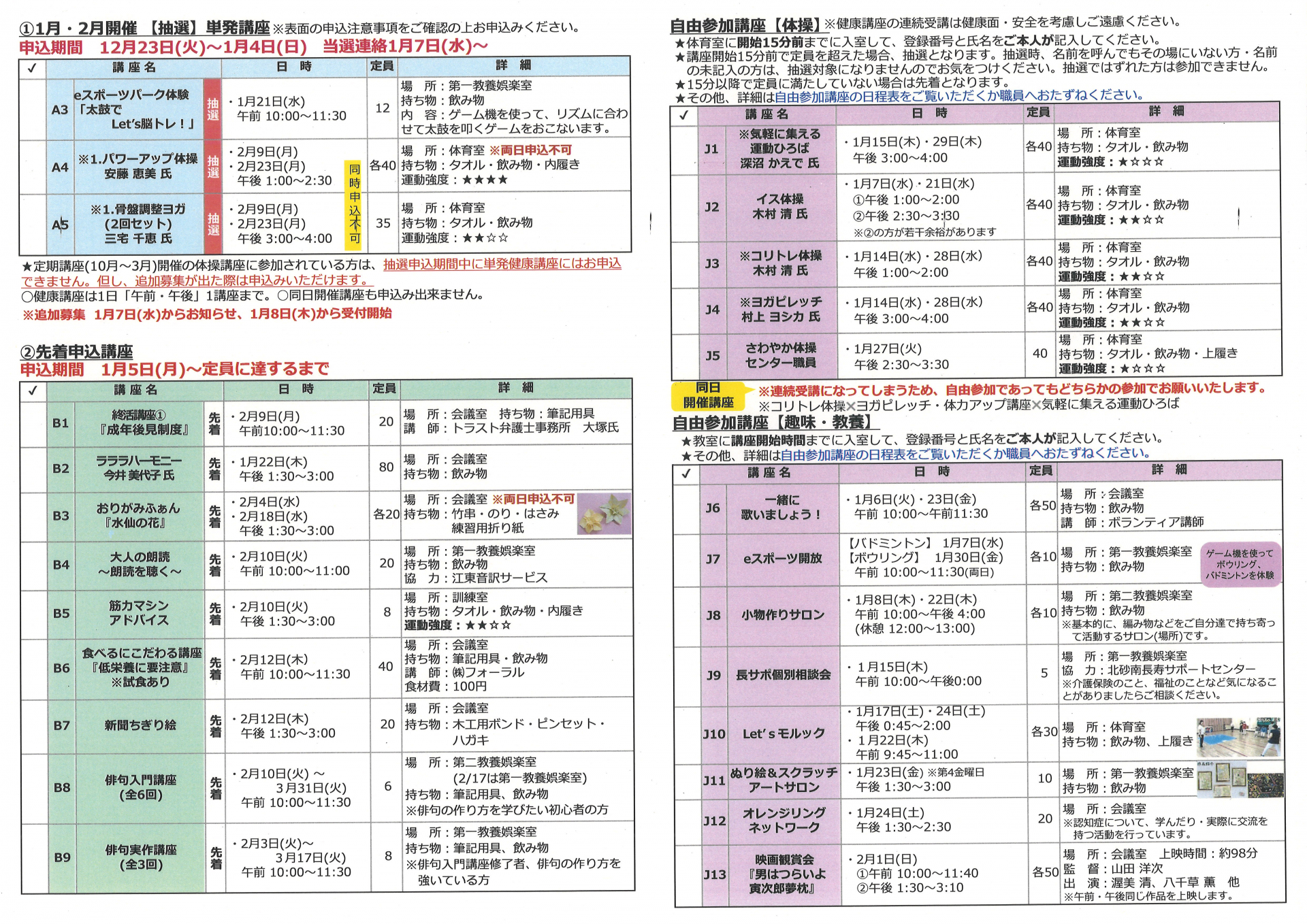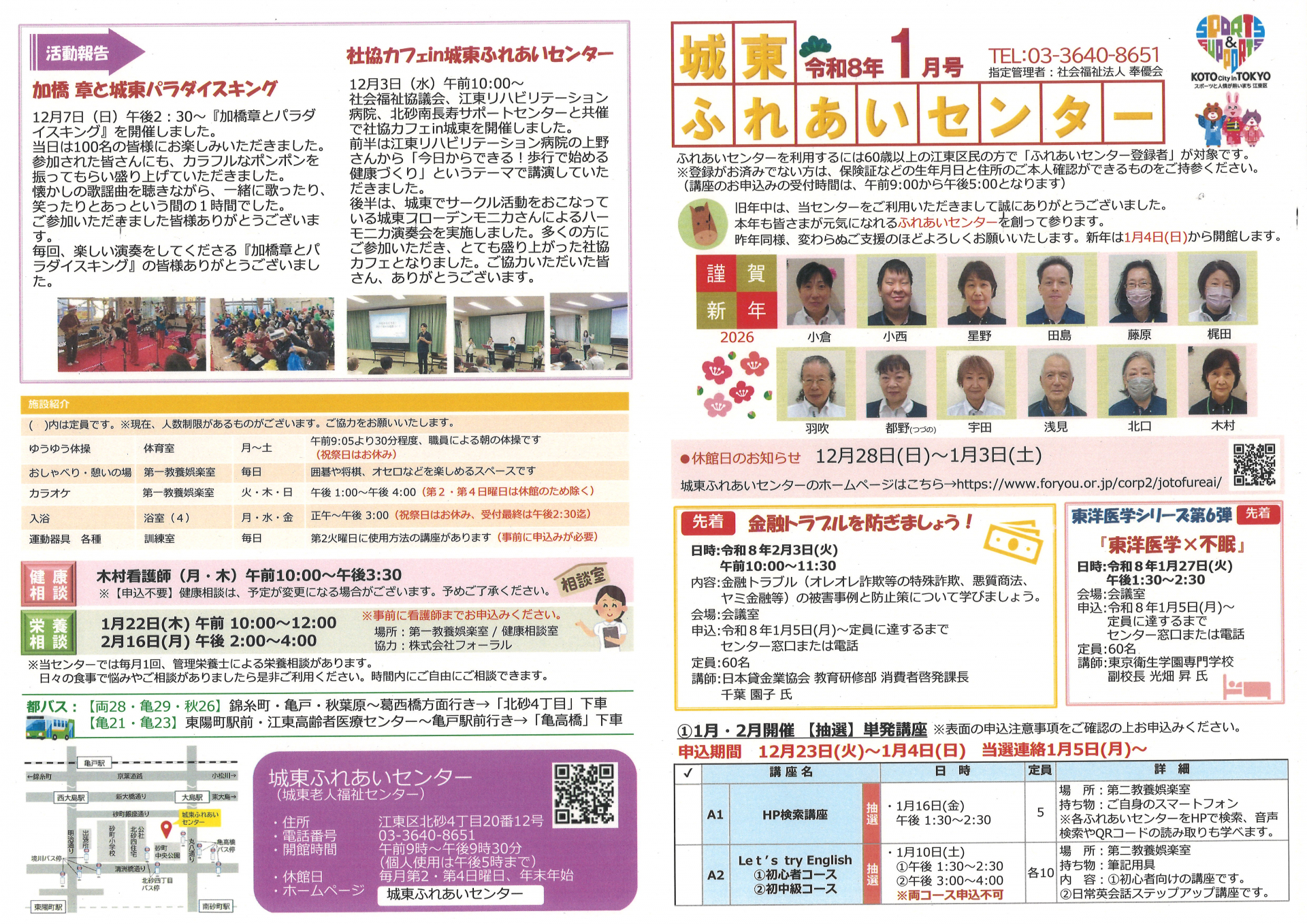 城東ふれあいセンターのおたより1月号が完成しました\(^o^)/