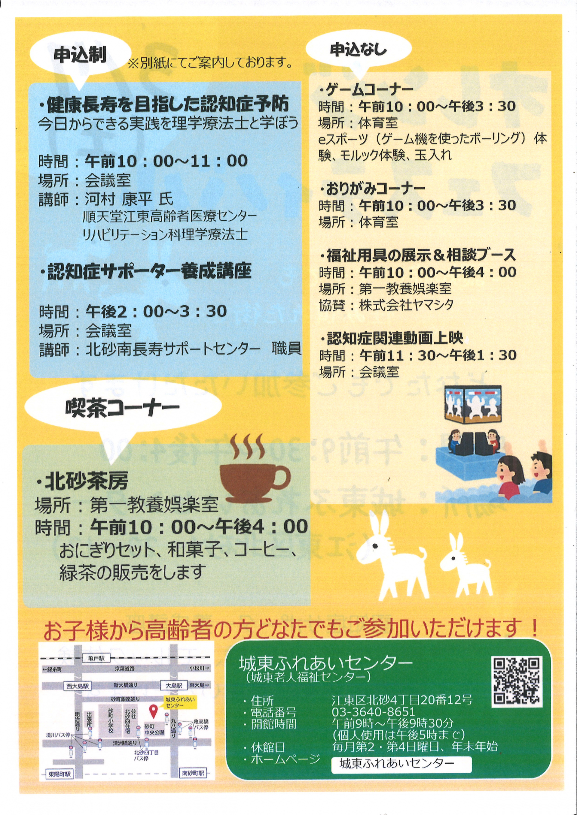 まずは地域交流やふれあいを楽しむイベントとして、城東ふれあいセンターまでお越しいただけたら幸いです。
