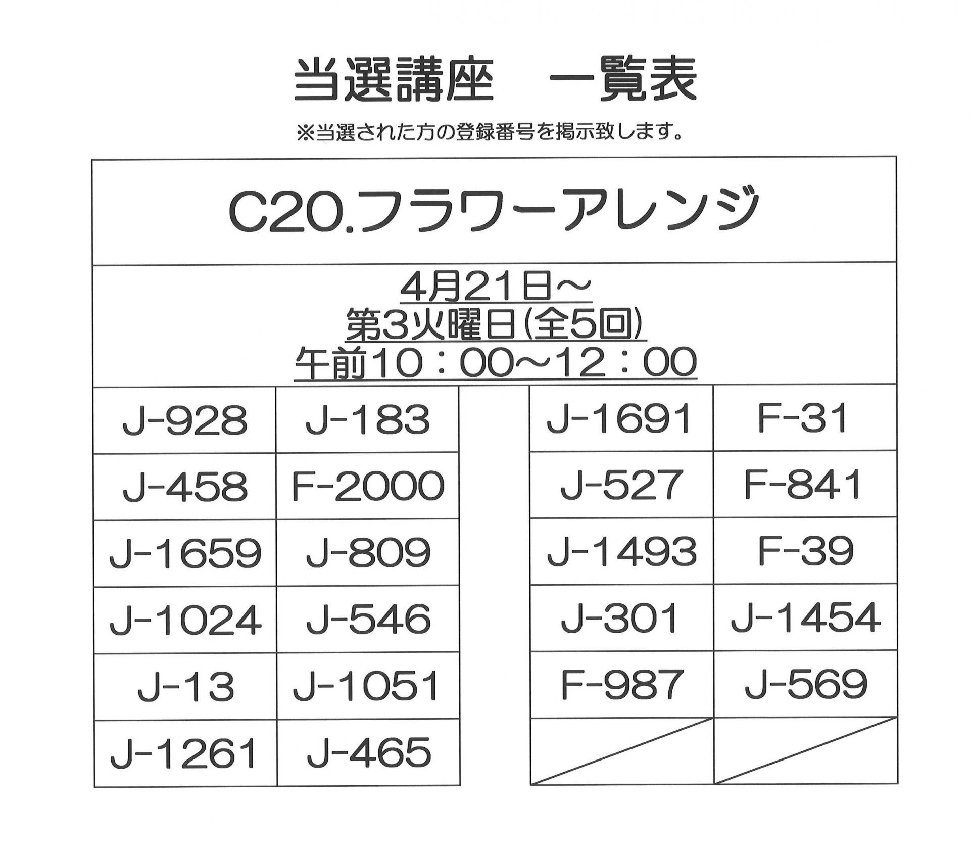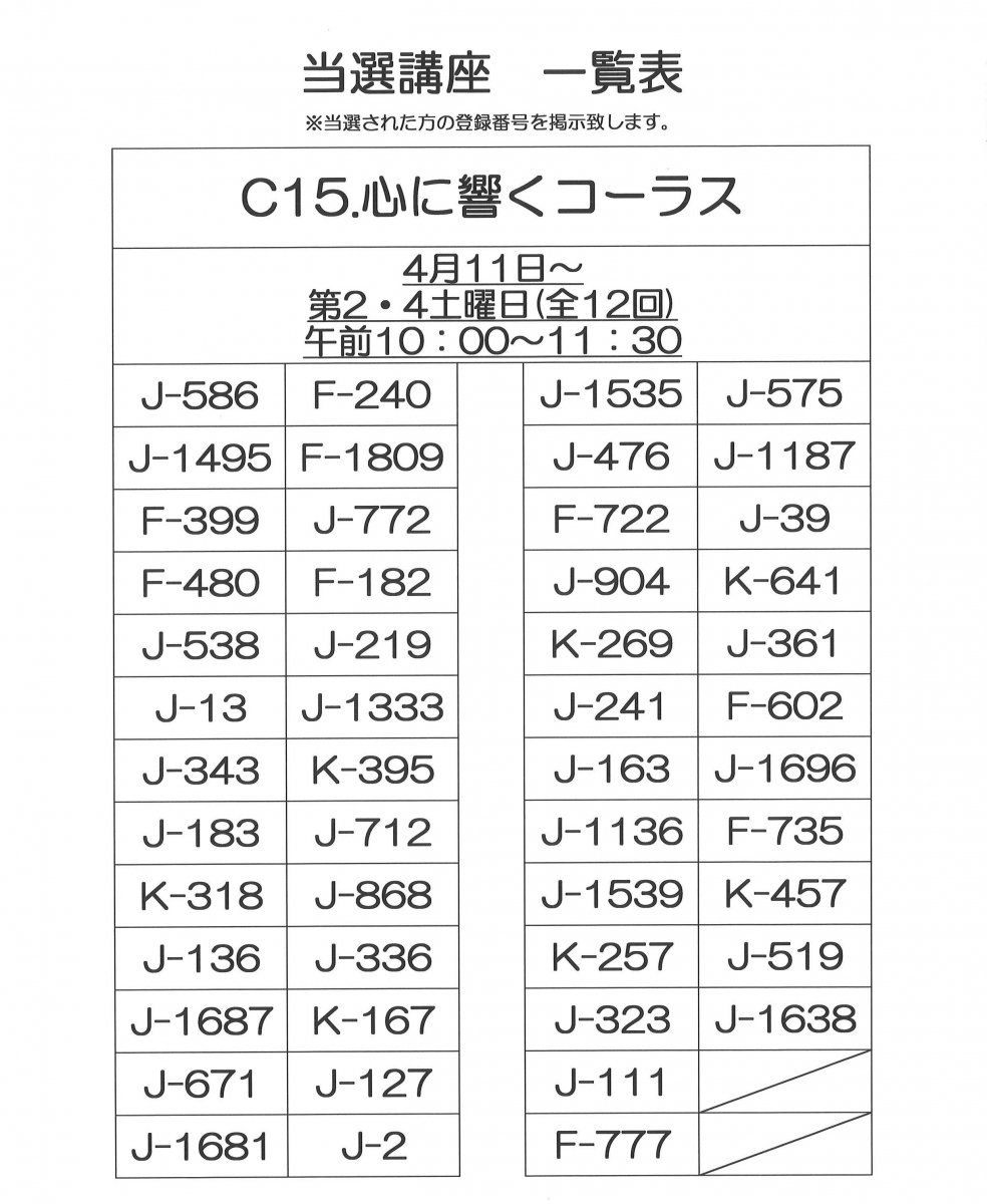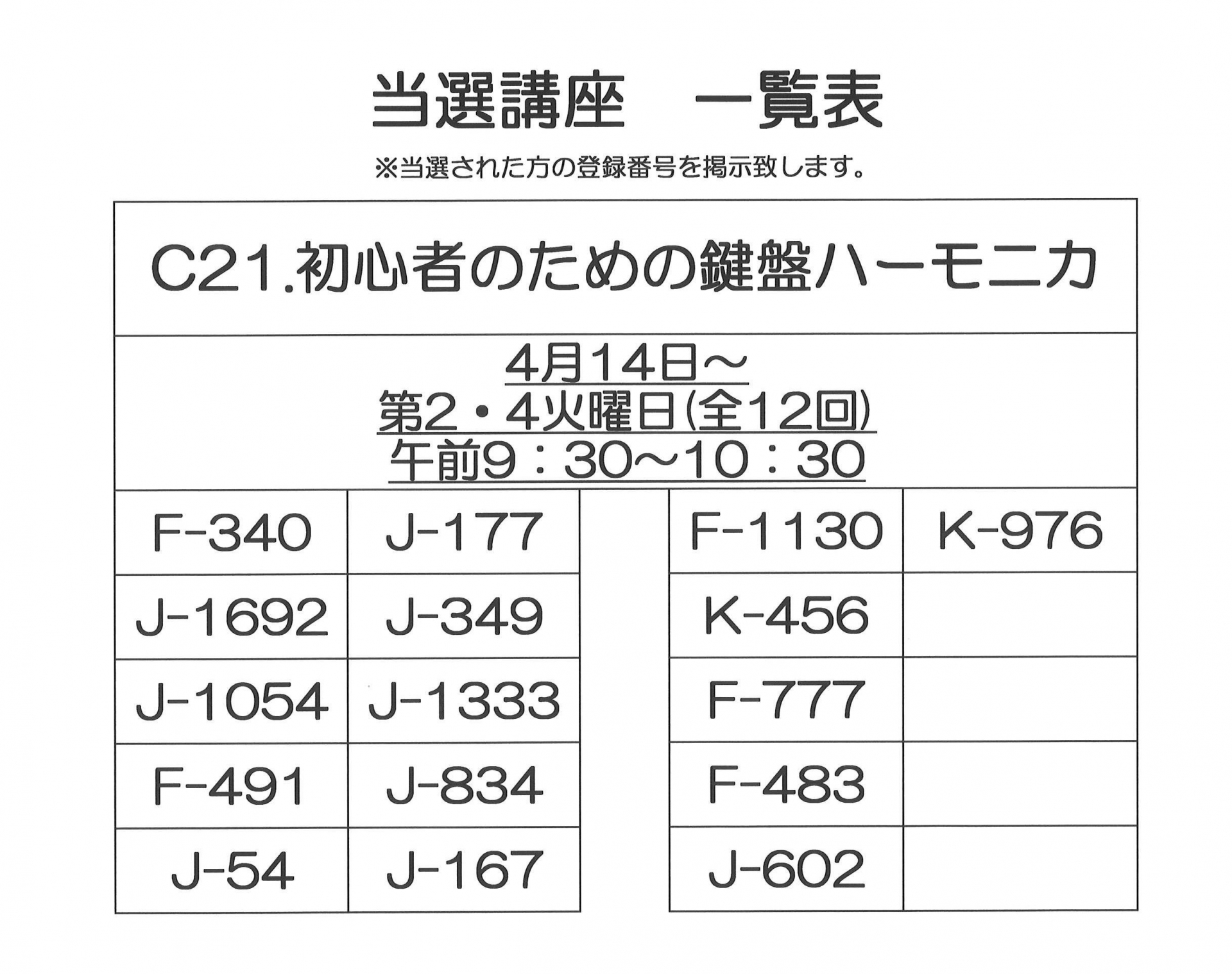 お手続きが必要な講座もありますので、お手続き期間にセンター窓口までお越しください。