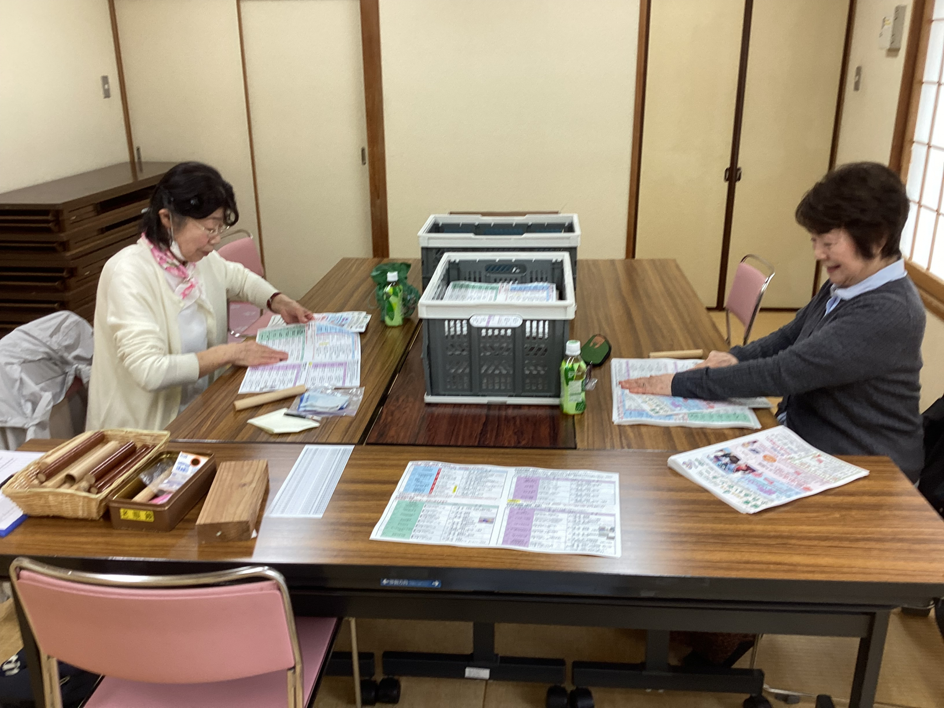 城東ふれあいセンターでは、毎月のおたよりの発行にともない、毎月19日におたよりを二つ折りにして予定表を挟んでくださるボランティア、通称折りボラの活動日があります。