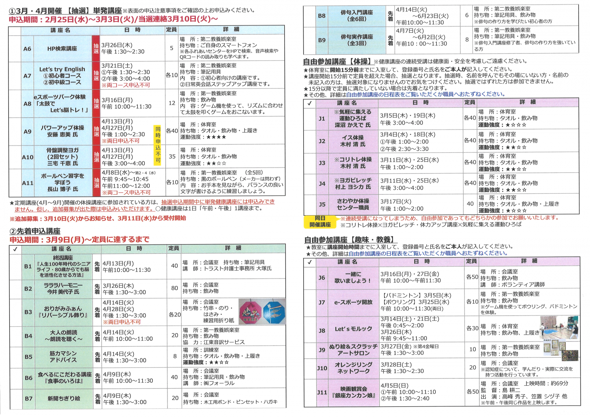 2026.02.25 お知らせ 城東ふれあいセンター3月のおたより Tweet シェアする 城東ふれあいセンターのおたより3月号が完成しました\(^o^)/3月も楽しい事盛りだくさん!何か始めてみたい方、体力をつけたい方、是非、城東ふれあいセンターにお越しください。皆様のお申込みをお待ちしております。 城東ふれあいセンター H.A 一覧へ戻る