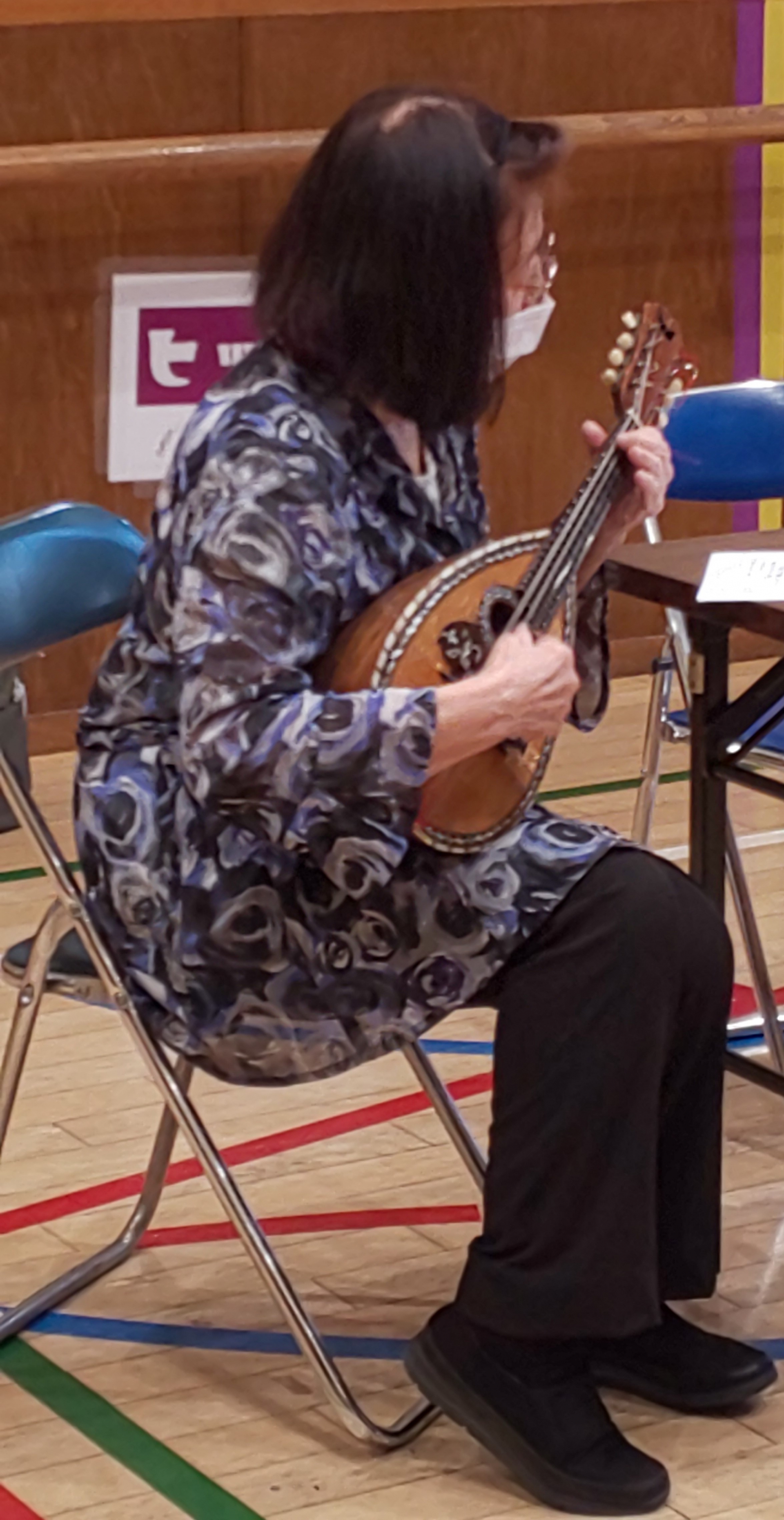 最後に金田先生のマンダリンの伴奏に合わせて、「夏は来ぬ」「茶摘み」を合唱し、「かえるのうた」の輪唱をしました。