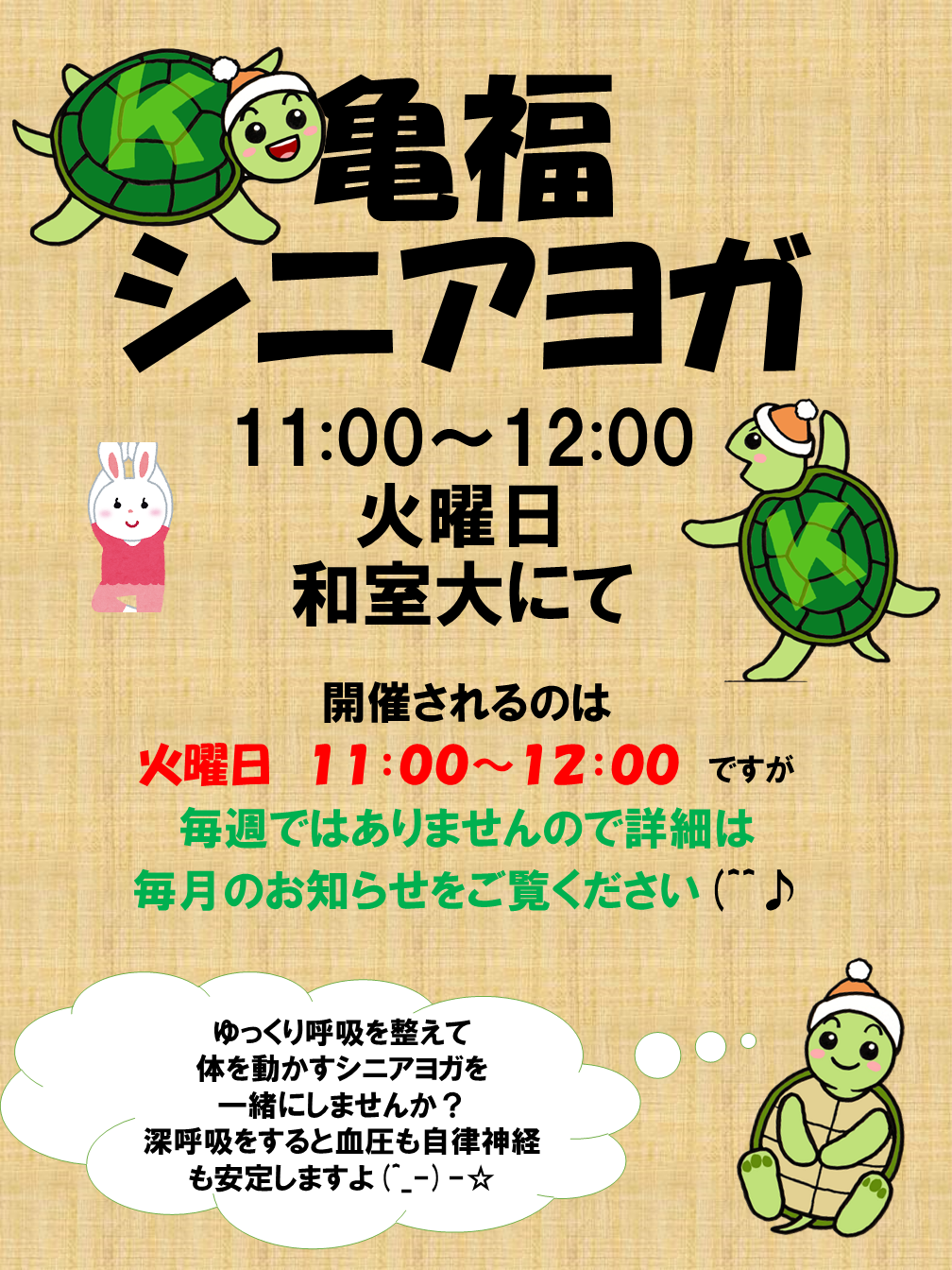 2024.08.03 お知らせ 申込み不要になったよ!亀福シニアヨガ Tweet シェアする 亀福シニアヨガは自由参加になりました(#^.^#) 8月は、6日(火)・27日(火)です。ぜひご参加くださいませ。 お待ちしておりますm(__)m 亀戸福祉会館 m.t 前の記事 2024.08.05 お知らせ 活き粋体操だよ!全員集合!&輪投げ! 次の記事 2024.08.02 お知らせ 活き粋体操だよ!全員集合 一覧へ戻る
