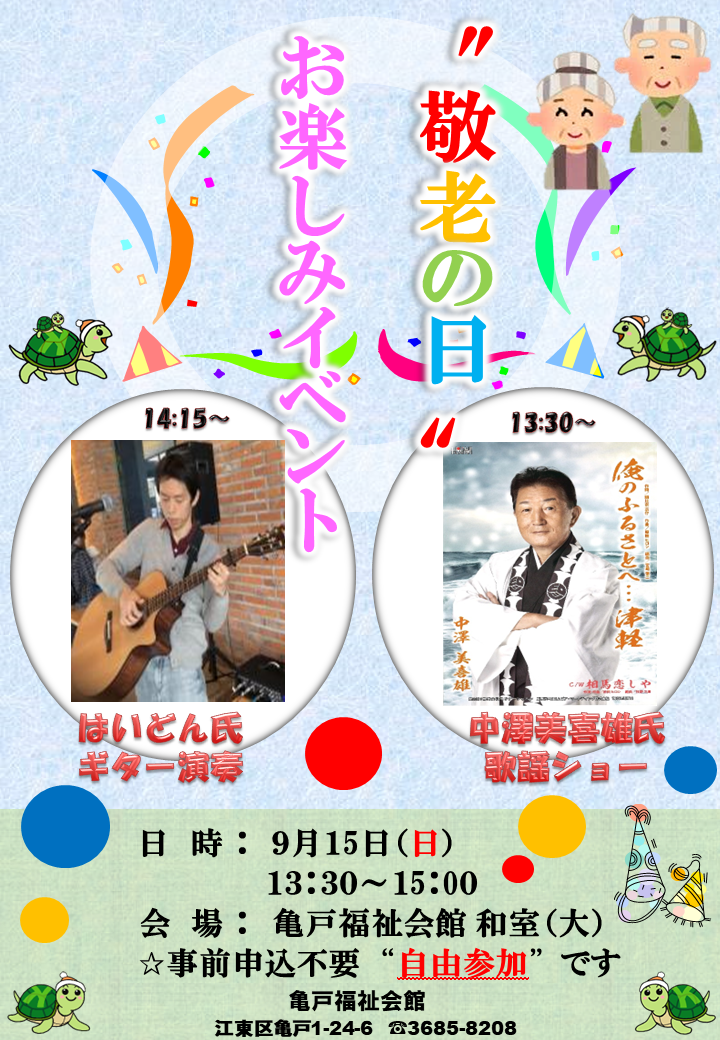 亀福「敬老の日イベント」開催のお知らせ