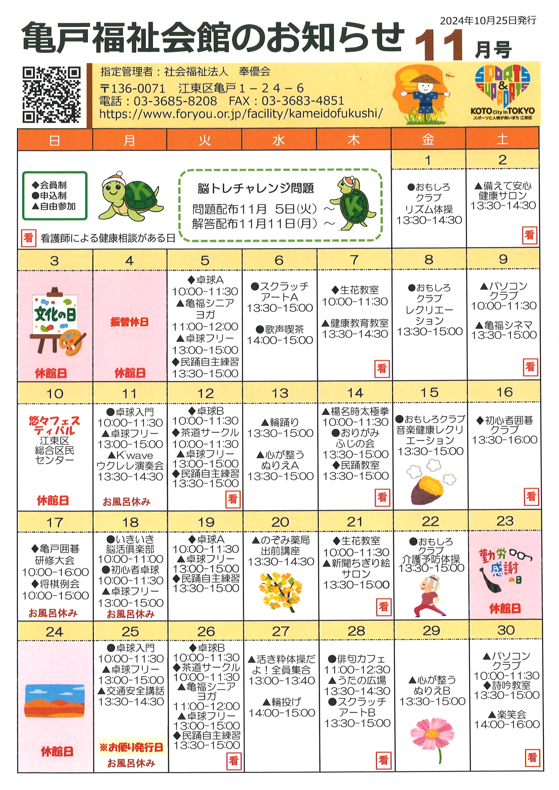2024.10.25 お知らせ 亀戸福祉会館お知らせ11月号が発行されました。 Tweet シェアする 前の記事 2024.10.25 お知らせ ふれあい祭り オカリナサークル雲雀の会(パート3) 次の記事 2024.10.21 お知らせ おりがみサロンが開催されました。 一覧へ戻る