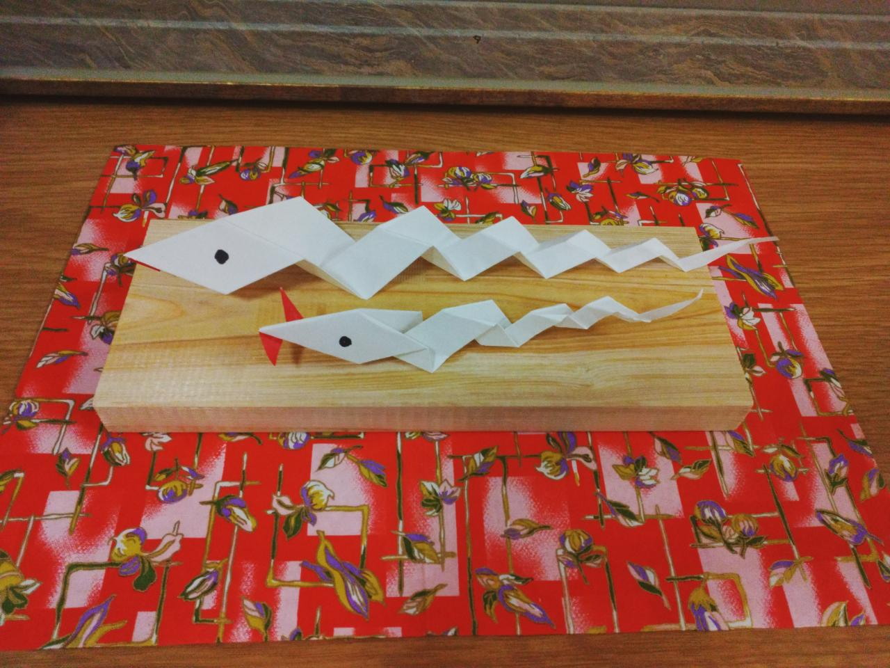折り紙で蛇を表現するのは難しいと思うのですが、ふじの会の田中先生が