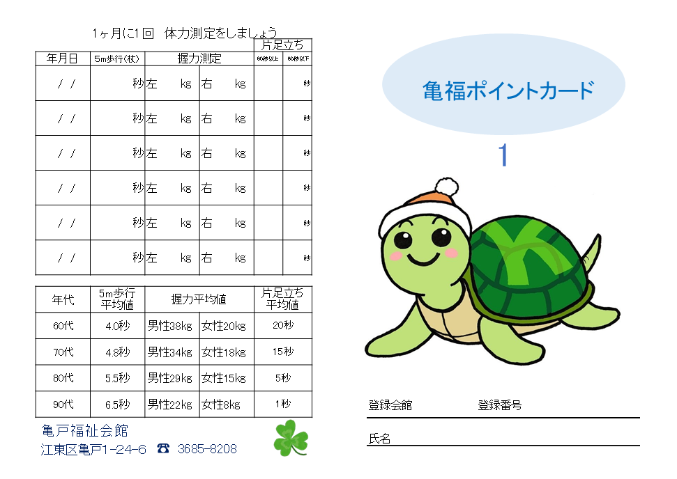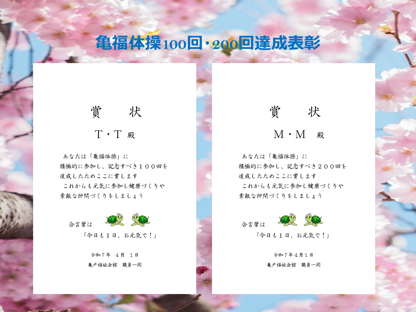 月曜日から土曜日の午後1時から開催している"亀福体操"に参加いただき