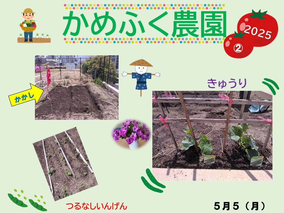 5月5日には「つるなしいんげん」と「きゅうり」を植えました♪おいしく育ちますように♪