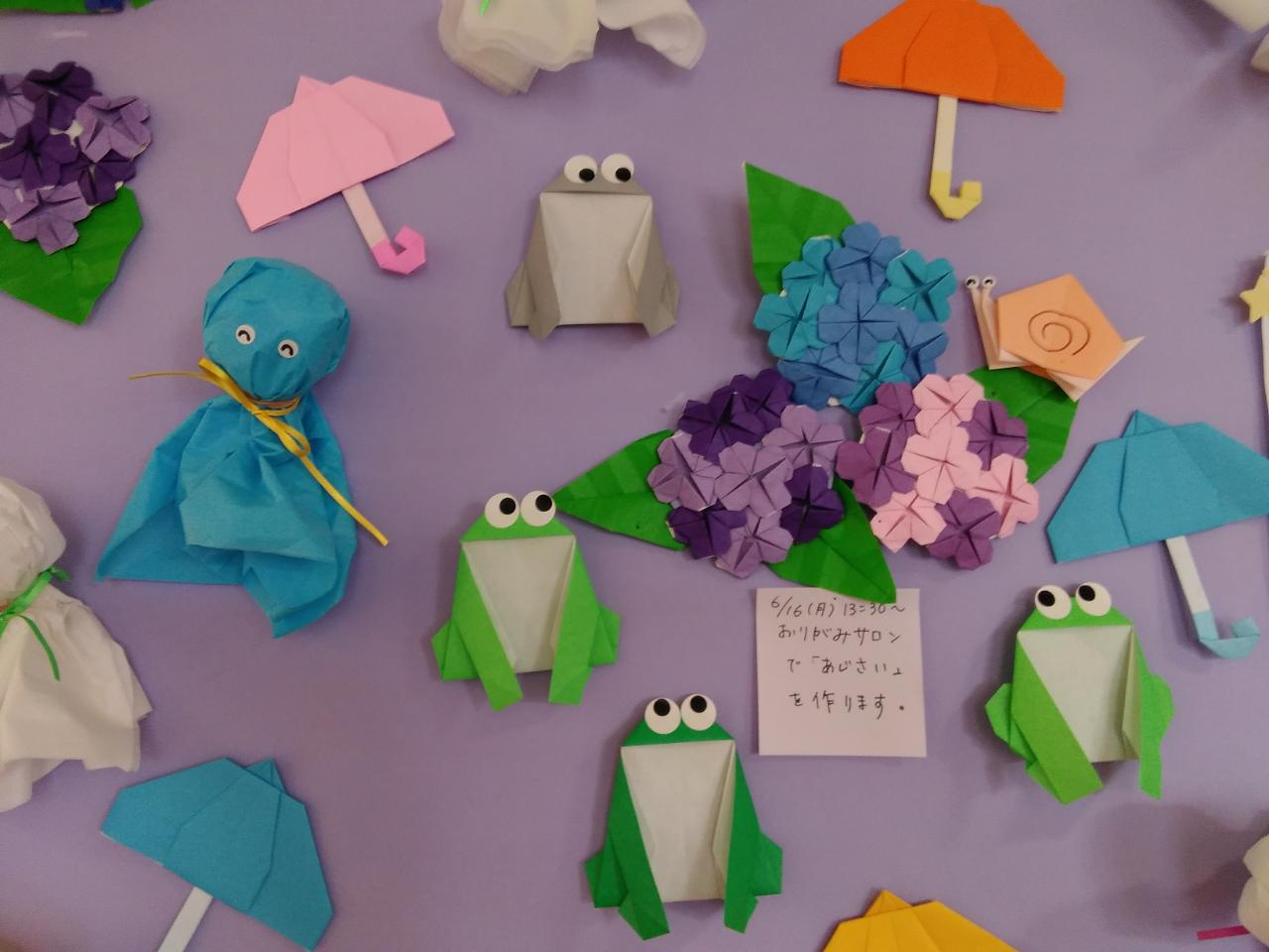偶数月のこの講座、6月のおりがみは「あじさい」です🌂
