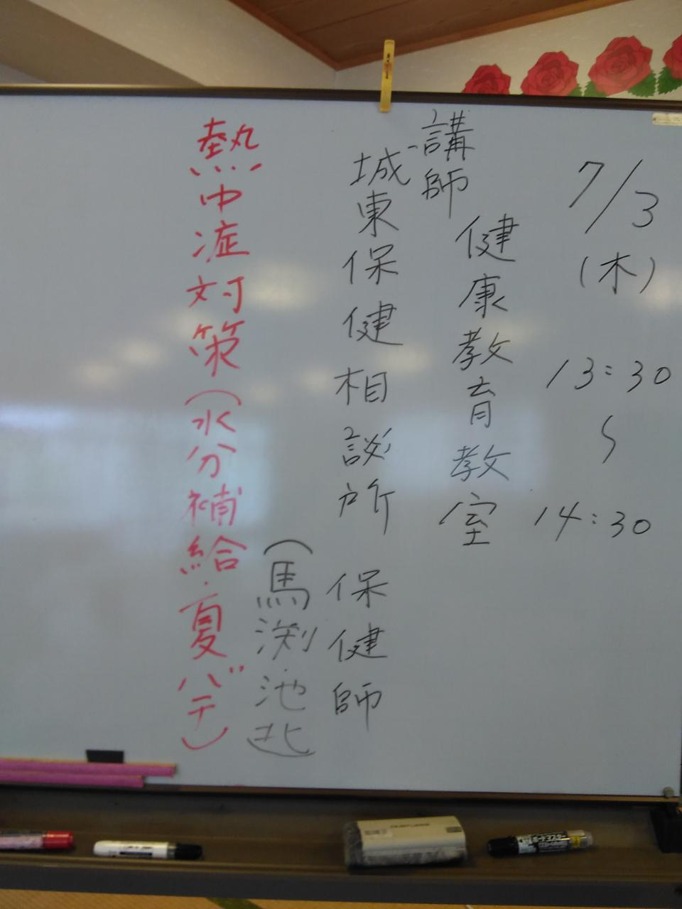 城東保健相談所の保健師さんによる【熱中症予防】の健康教育教室が開催されました
