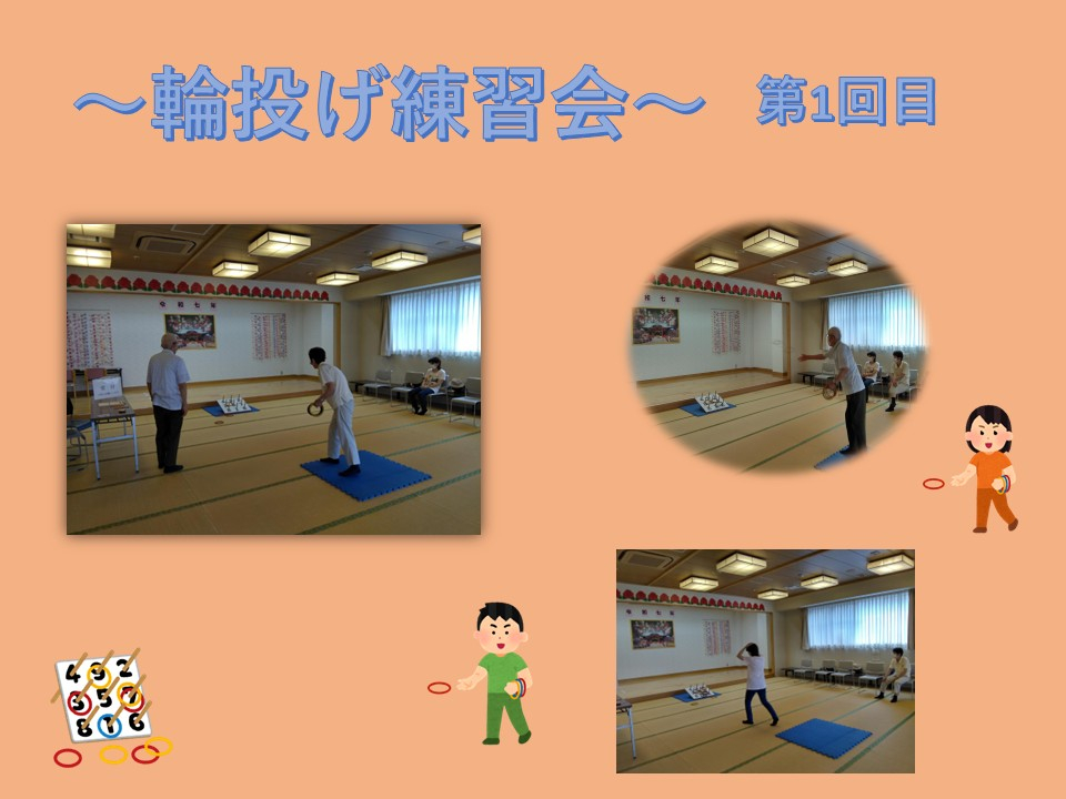 まずは第1回目の練習会、その名も朝活!~輪投げ練習会~午前10時から開催しました!朝から輪投げの練習~~~♪どんなスタイル投げたら入る確率が高いのか?どの向きが投げやすいかな?など参加してくださった方々とお話ししながらまったり練習(*´ω`)職員も一緒に参加させていただき最後は誰が高得点だせるかゲームをしました(^^♪
