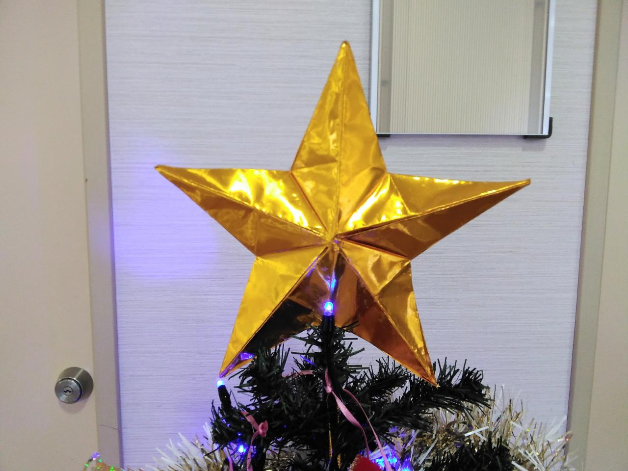 キラキラの大きな星を作っていただき、これでバッチリ!クリスマスツリーの完成で~す☆★☆kirakira~