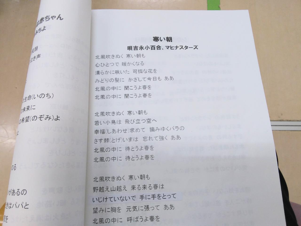 ピアノに合わせて軽い準備体操から始まり、みなさんが歌いたい歌を歌集の中から先生にリクエストします♪