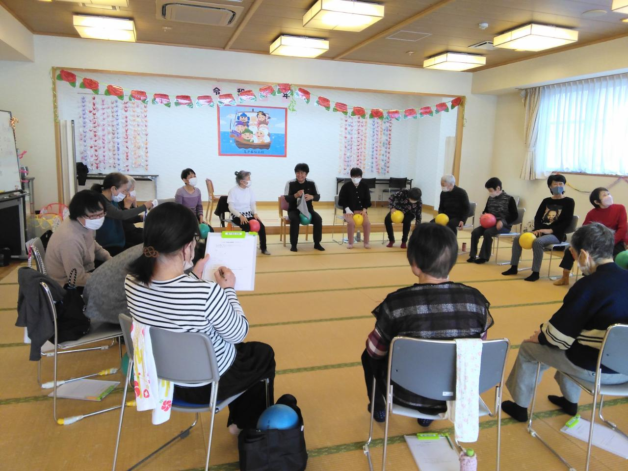 前半は椅子に座っての体操で、ボールやタオルを使いながら全身を動かし、
