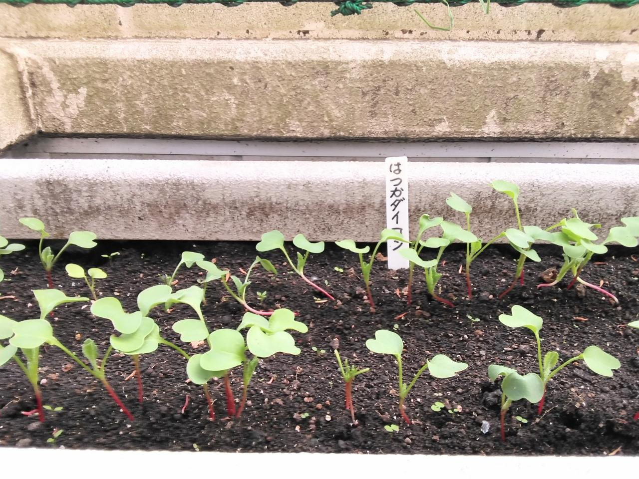 二十日大根の小さな芽もこんなにたくさん!そろそろ間引きが必要です。