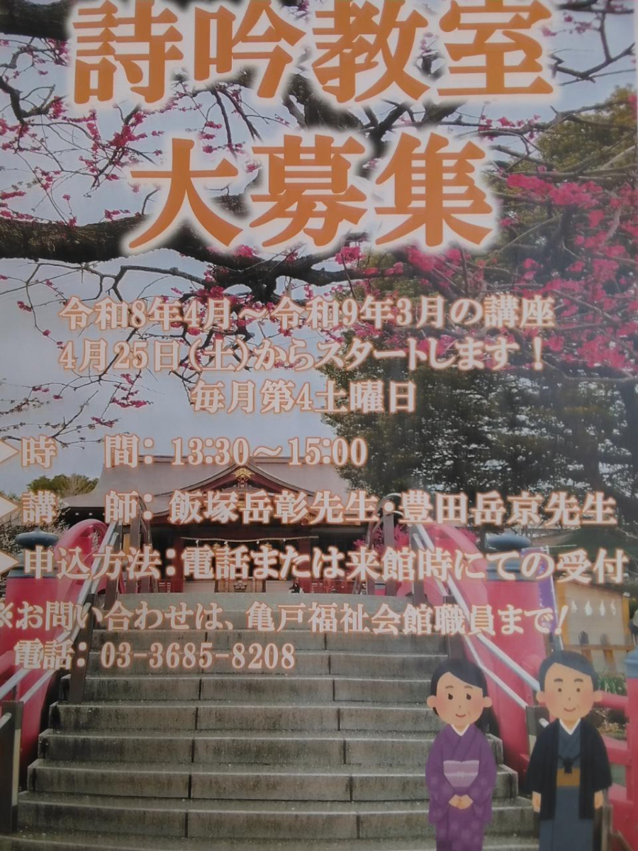詩吟教室は毎月第4土曜日13時30分~1階多目的室で開催しています