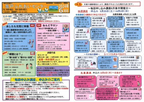 2024.09.04 祝!ドリかめ手帳スタンプ600個達成!! 活動報告 2024.08.31 【お知らせ】令和6年度コーラス前期ご参加の皆様へ お知らせ 2024.08.29 素敵なうちわが出来上がりました♬ 活動報告 2024.08.26 朝活盆踊り ~レッツ!ダンシング~ 活動報告 2024.08.24 9月自由参加【ゆうゆう体操、カラオケ自由開放、卓球自由開放】日程表 お知らせ 2024.08.24 2024亀戸ふれあいセンター9月号予定表 お知らせ 2024.08.24 2024年亀戸ふれあいセンター9月号おたより お知らせ 2024.08.23 知って得する!食物繊維のパワーでLet's腸活♪ 【食べるにこだわる講座】 活動報告 2024.08.22 9月前半開催毎回申込講座 追加募集のご案内 お知らせ 2024.08.22 9月前半開催毎回申込講座 当選連絡その2【その他の講座】 お知らせ 2024.08.22 9月前半開催毎回申込講座 当選連絡その1【体操講座】 お知らせ 2024.08.20 祝!ドリかめ手帳スタンプ200個達成! 活動報告 2024.08.19 祝!ドリかめ手帳 900個達成~~!! 活動報告 2024.08.16 鮮やかなあさがおがたくさん咲きました!【折り紙サロン】 活動報告 2024.08.15 補聴器は買ってからの後が勝負!!【これだけは知っておこう聞こえと補聴器】 活動報告 1 … 25 26 27 28 29 … 46