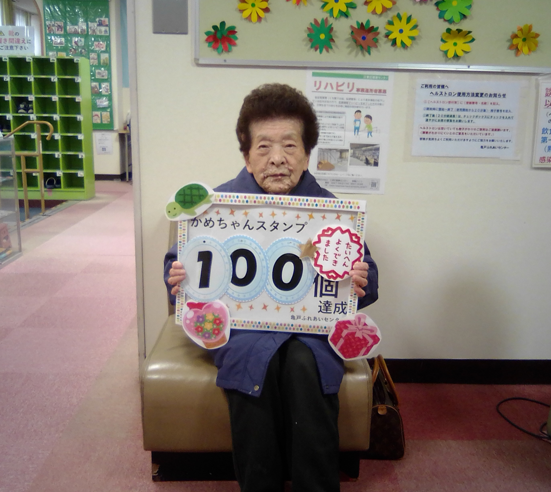 亀戸ふれあいセンター来館時のお楽しみ、かめちゃんスタンプ100個達成されましたS.H様です。