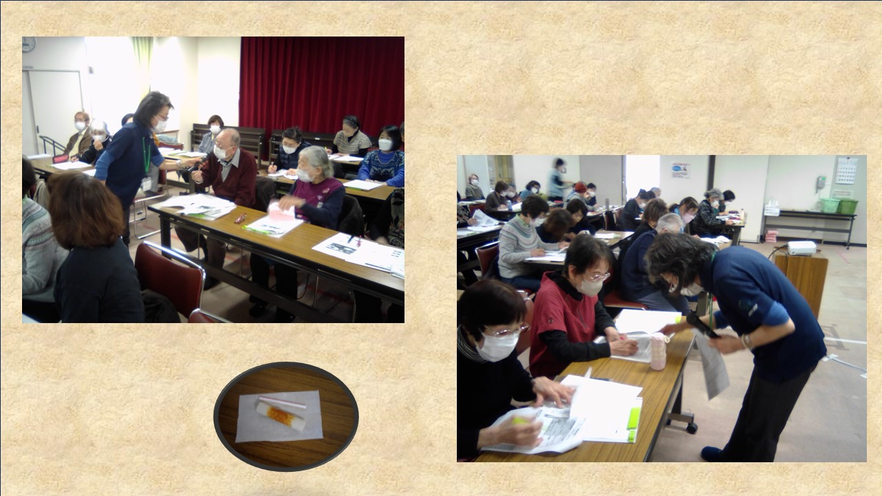 講座中、血管の柔らかさを知っていただくのに竹輪を使って具体的な例えで皆さんに直接触れて頂きました!