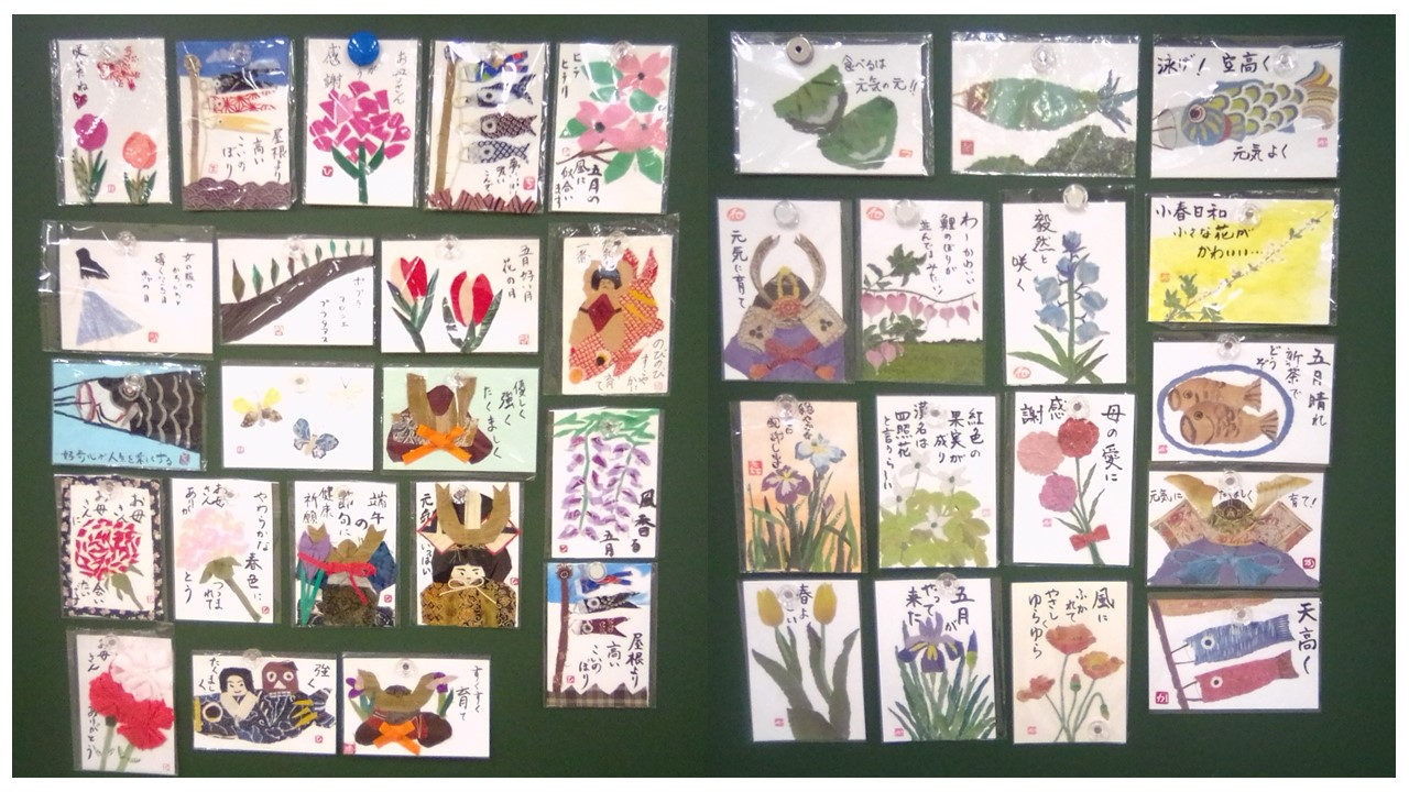 今回は5月のイベントをちぎり絵で作りあげた皆さんの作品を紹介します。