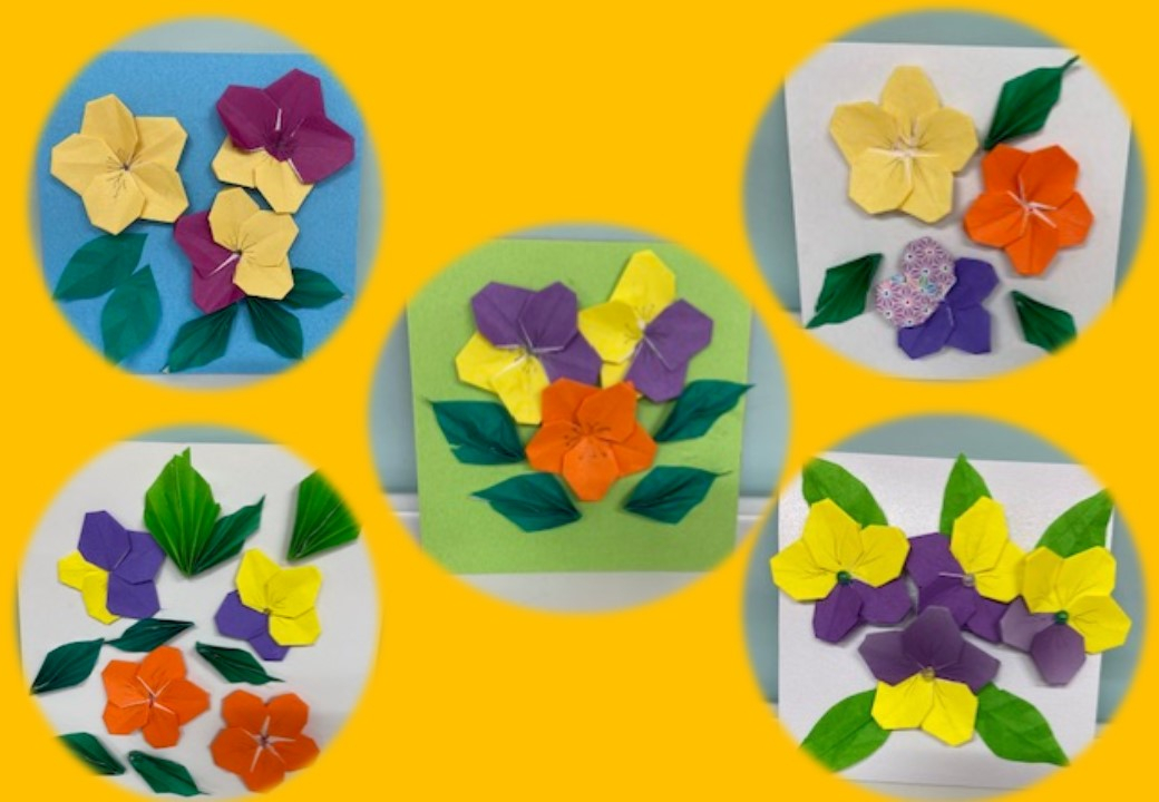 カラフルな『パンジーの花』が出来ました! 【折り紙サロン】