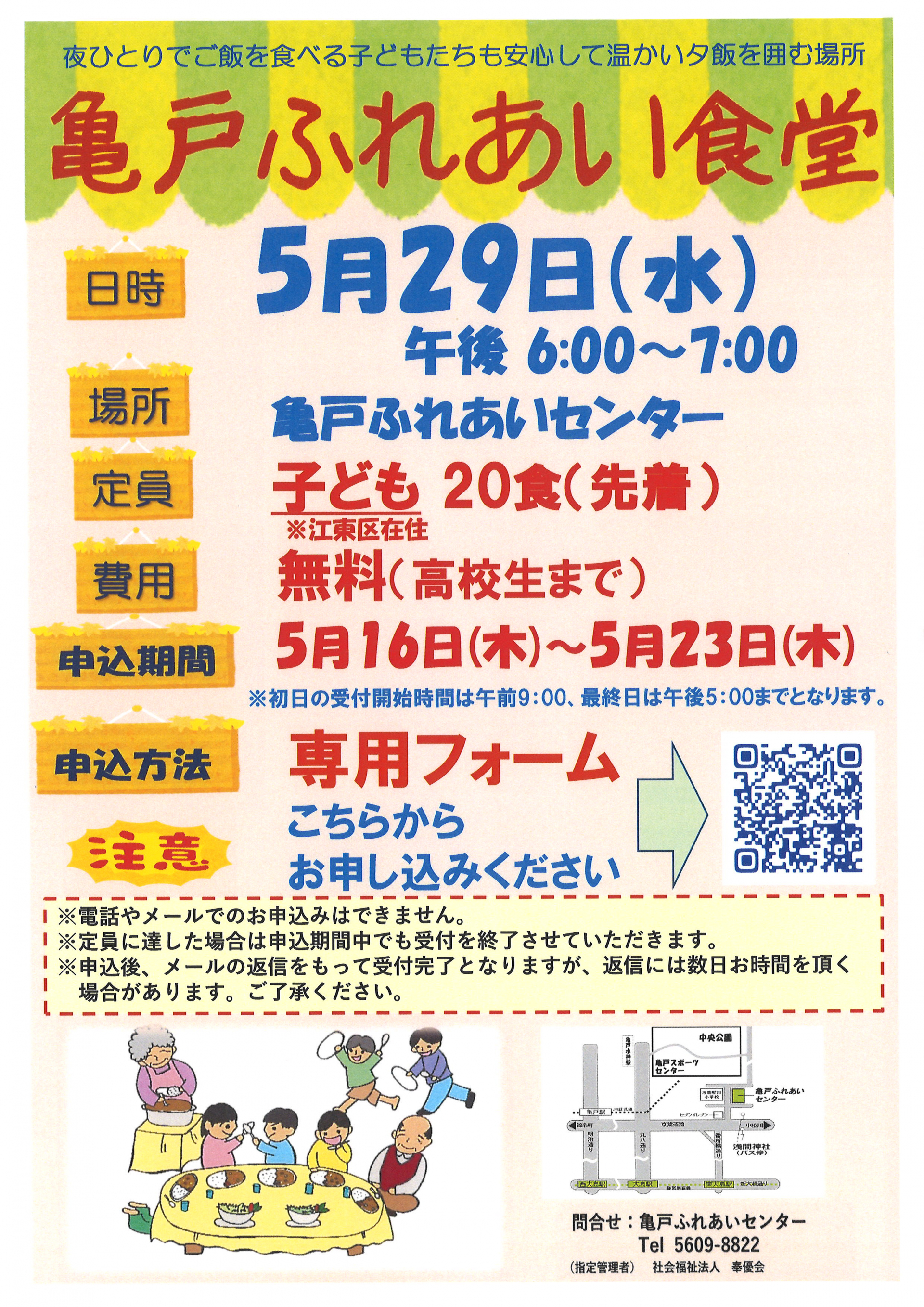 そんな美味しいカレーライスが食べられる、楽しい亀戸ふれあい食堂の次回は5月29日(水)午後6:00開店です。