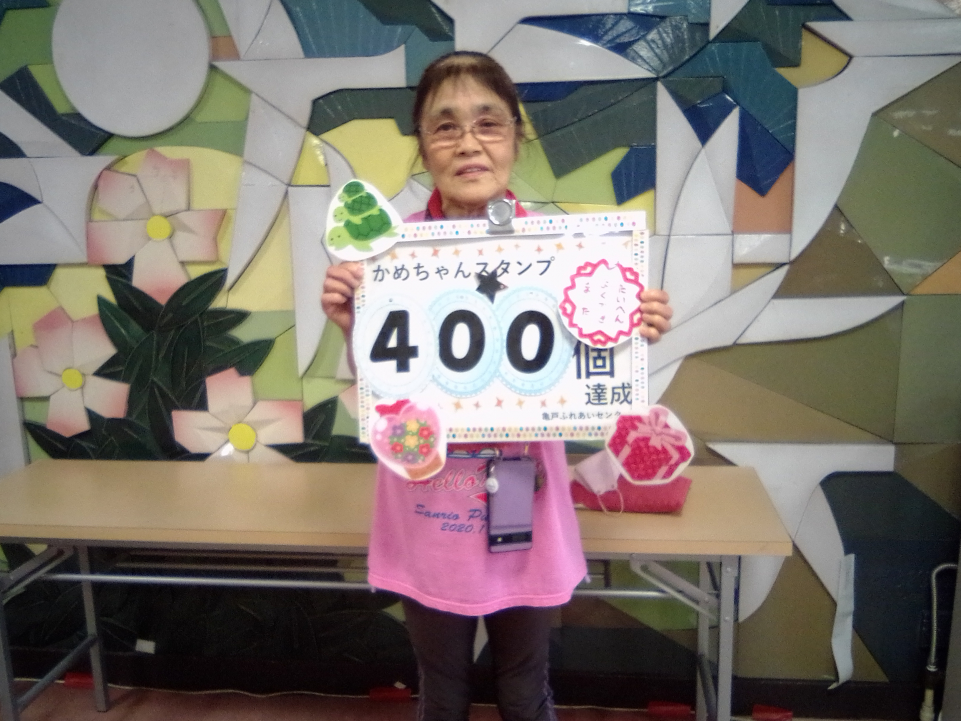 亀戸ふれあいセンターオリジナル、かめちゃんスタンプ400個達成された方のご紹介です(*^▽^*)