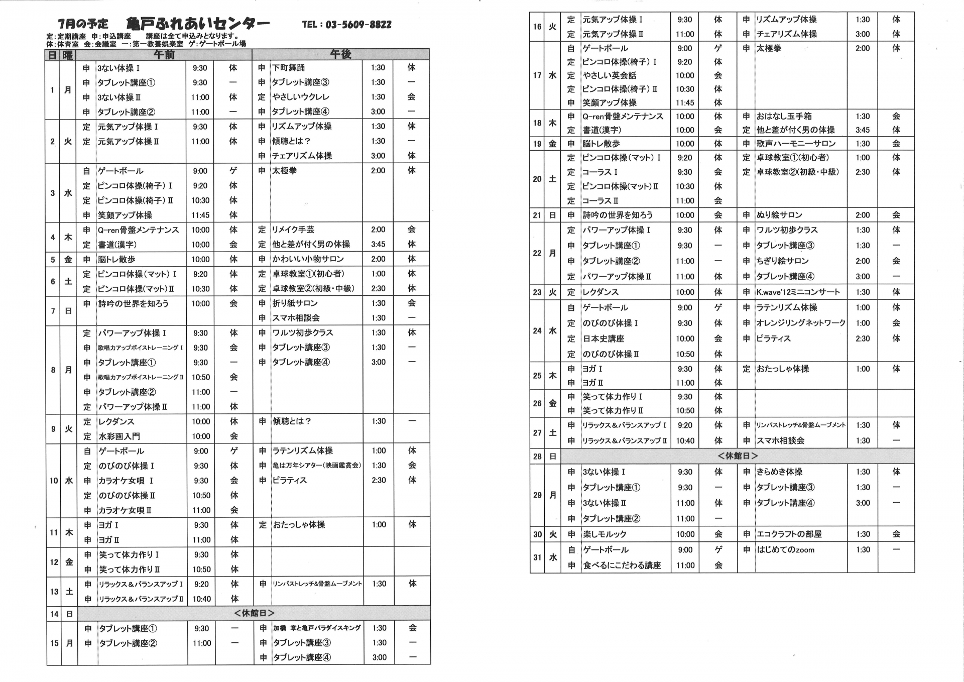 2024.06.25 お知らせ 2024亀戸ふれあいセンター7月号予定表 Tweet シェアする 2024亀戸ふれあいセンター7月号予定表、完成しました。 前の記事 2024.06.25 お知らせ 2024年亀戸ふれあいセンター7月号おたより 次の記事 2024.06.24 お知らせ 7月前半毎回申込講座・3ヶ月講座 追加募集のご案内 一覧へ戻る